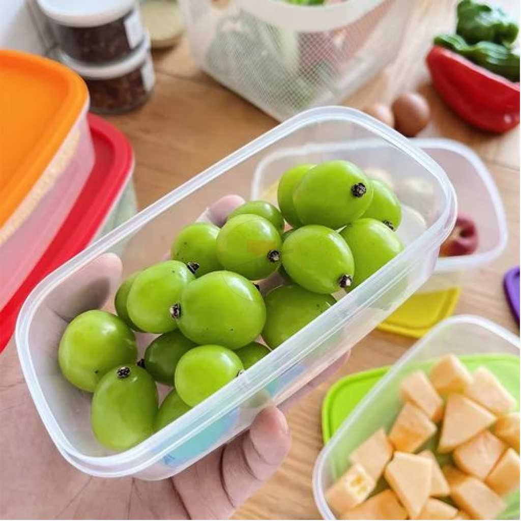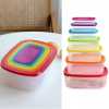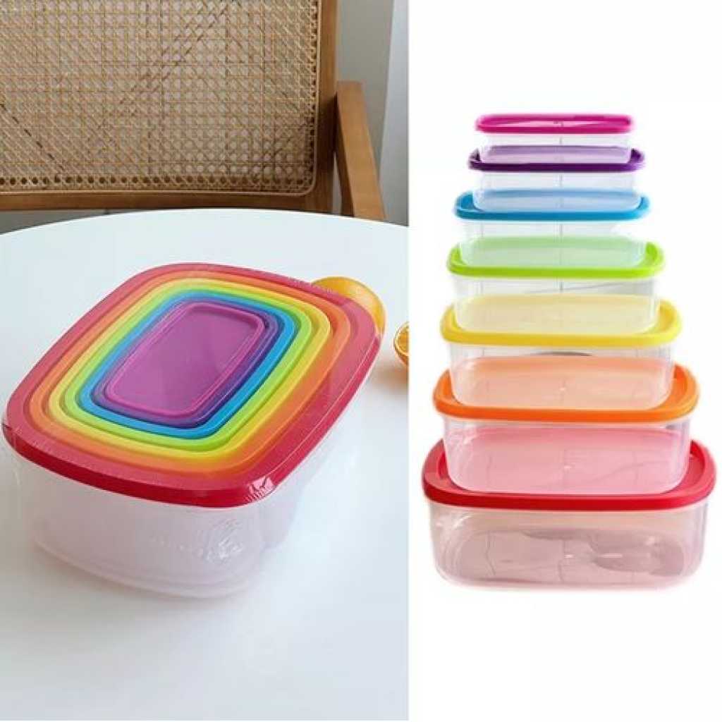 7 Piece Rainbow Plastic Fridge Storage Food Containers With Leakproof Lids- Multi-colour. This excellent quality, vibrant multi-colored food storage container is the perfect solution to efficiency & the first step towards a more organized kitchen. These small storage boxes are perfect for storing your lunch or any food Easy to clean, and convenient to pack food, cheese, snacks, seasoned, etc. Easily transportable containers are also safe for use in the dishwasher, freezer, or refrigerator. Use a soft brush or sponge to clean them using a detergent solution. Due to their durable nature, these containers will last for a long time even with regular use. Kitchen Food Storage Container to store Spices, Masalas, Dry Fruits, Mouthwash, etc.Made of 100% food-grade virgin plastic, it is unbreakable and dishwasher safe.