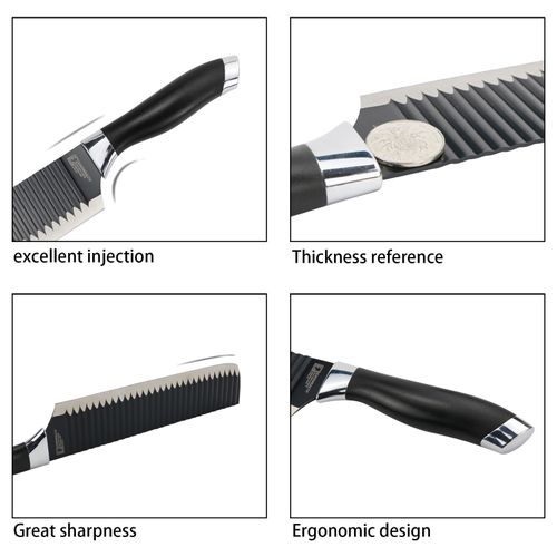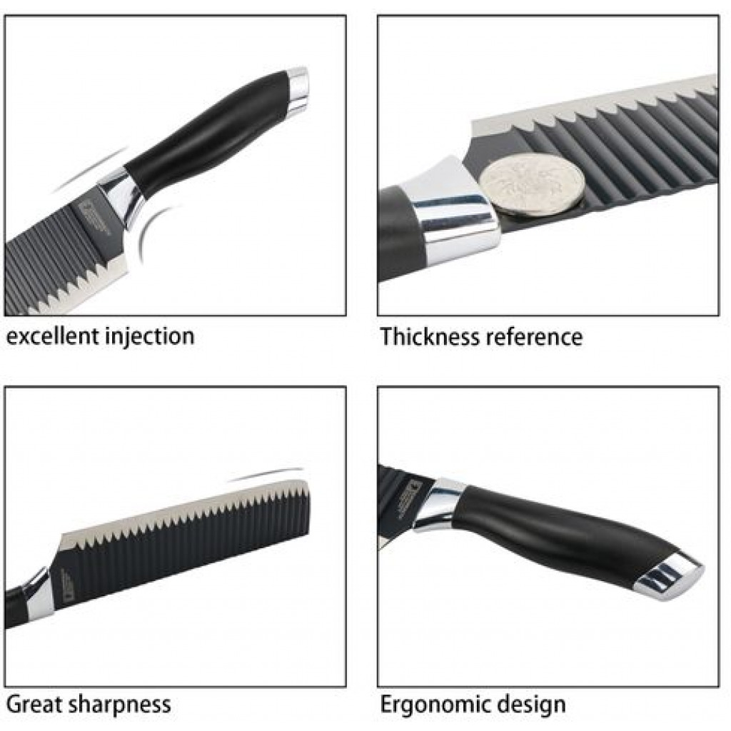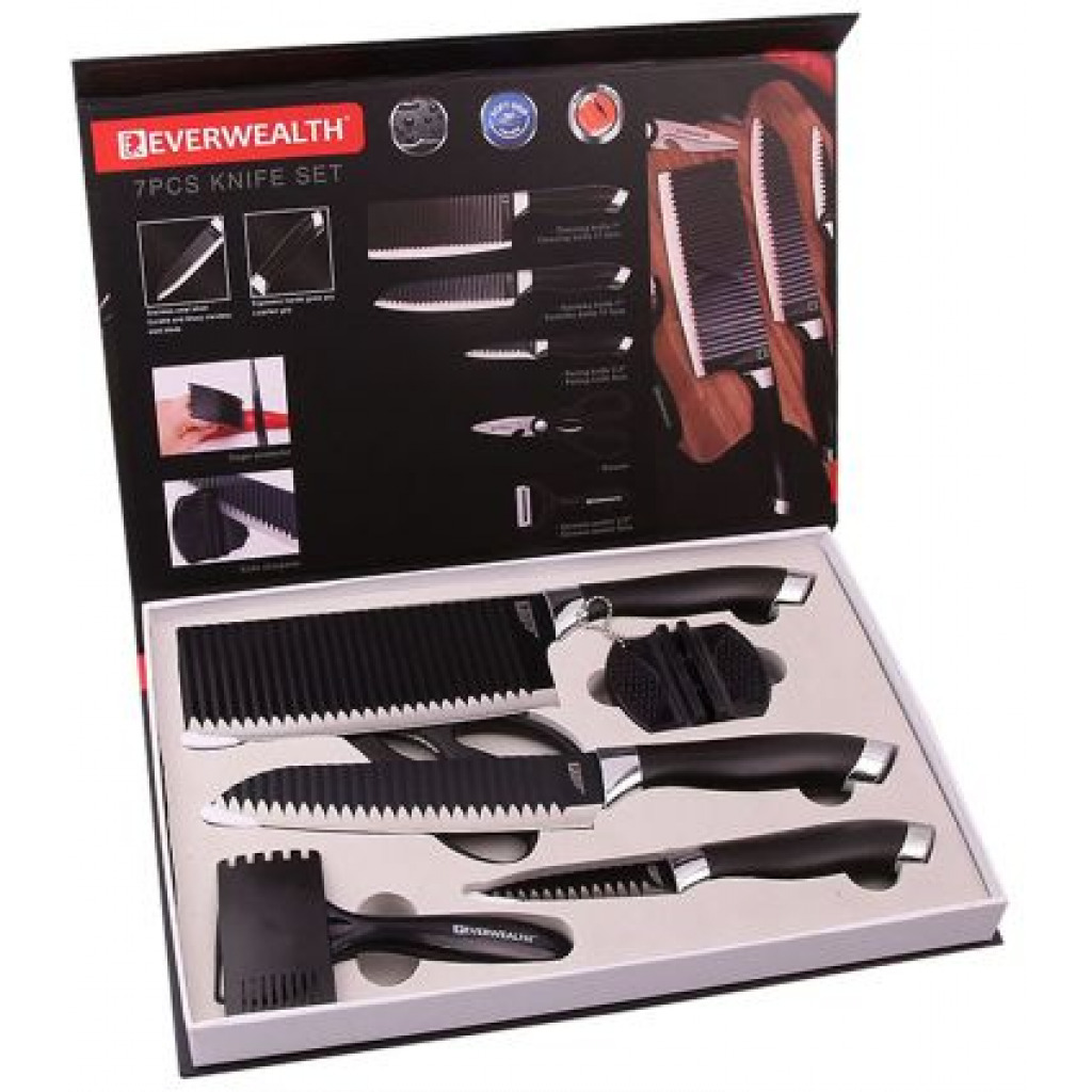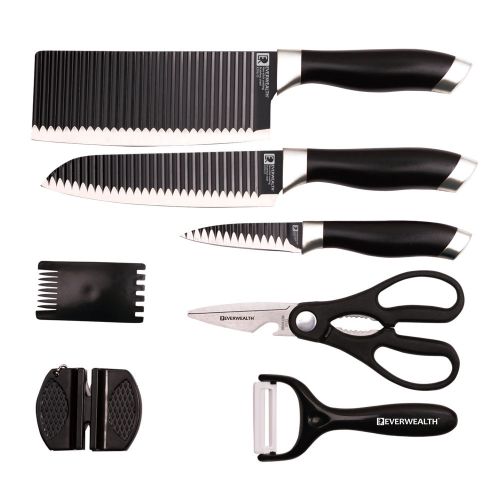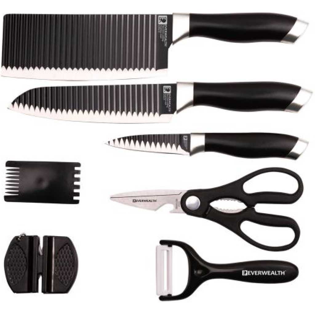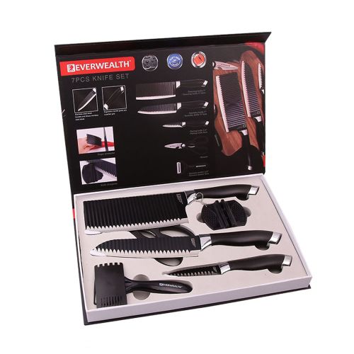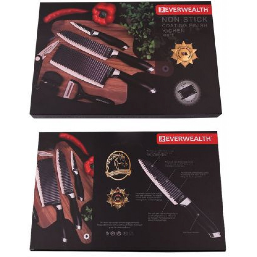 If you are looking for the decorative knife for your table we offer the beautiful floral designed knife for your kitchen and table.Ergonomic anti slip handle, feels comfortable to grip.Premium quality material rust proof easy to use and clean.High hardness and sturdy, performs well in slicing, dicing, chopping, mincing and more.This stainless steel knife cuts all your kitchen related food in a sharp way. A seven piece non stick coating & stainless steel knife set ideal for everyday use by Everwealth. Made with high quality, razor-sharp stainless steel blades for precise cutting, the wavy knife surface design, non-stick coating and easy-grip handle makes gliding and slicing through any kind of food a breeze. Key Features: A professional kitchen knife set that includes A fine set of kitchen knives The ergonomic non-slip handle feels comfortable to handle A superior quality material, rust-proof, easy to use and clean Robust, it performs well in slicing, dicing, chopping Non stick set.