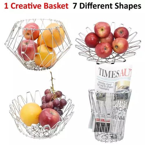 Stainless Steel Multipurpose Fordable Basket for Home & Office. It can be converted into different shapes for various usages. Store fruits and vegetables in More different shapes as per your requirement. And Look Like Unique & Creative Products Design As Like Multi Shape & Style That Could Give A Sturdy Look Your Stand & Home