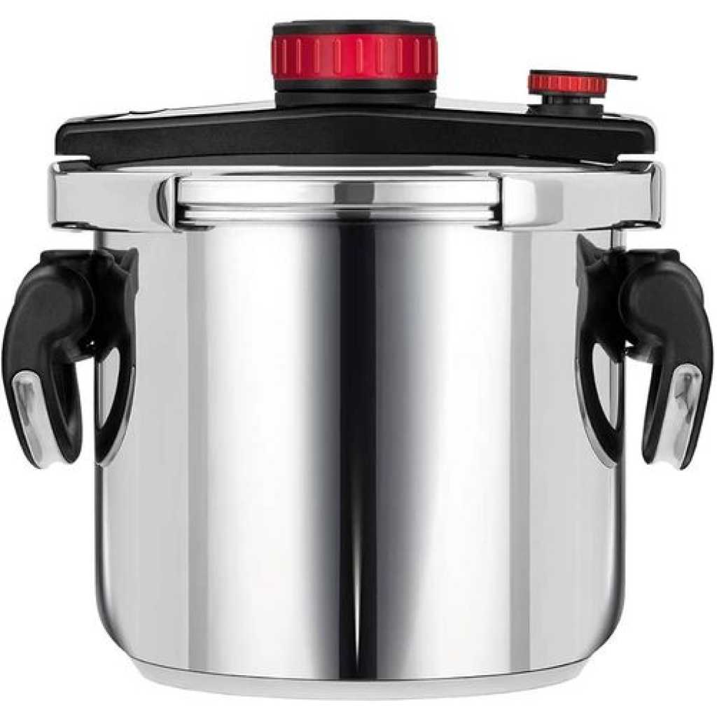 Key Features: [BENEFITS]Pressure cooker made of stainless steel, developed with German technology, reduces cooking time by up to 70% (depends on the heat source.) It is ideal for foods such as chicken, red meat, fish, rice, corn , legumes, desserts and much more. Completely safe and durable [DURABLE STEEL CONSTRUCTION]Discover the power of our pressure canner, designed to provide a long-lasting and reliable performance, even heating, and easy maintenance, making it the perfect tool to master the art of home canning. [COMPATIBILITY]This pot, being made of stainless steel, is compatible with all types of stoves such as: gas, induction, ceramic, halogen and electric. [HEALTHY KITCHEN]Our express cookers keep the vitamins and minerals in the food, which translates into tasty and nutritious meals for the whole family. The inside surface is made of Stainless steel that prevents food from sticking and makes cleaning easier.