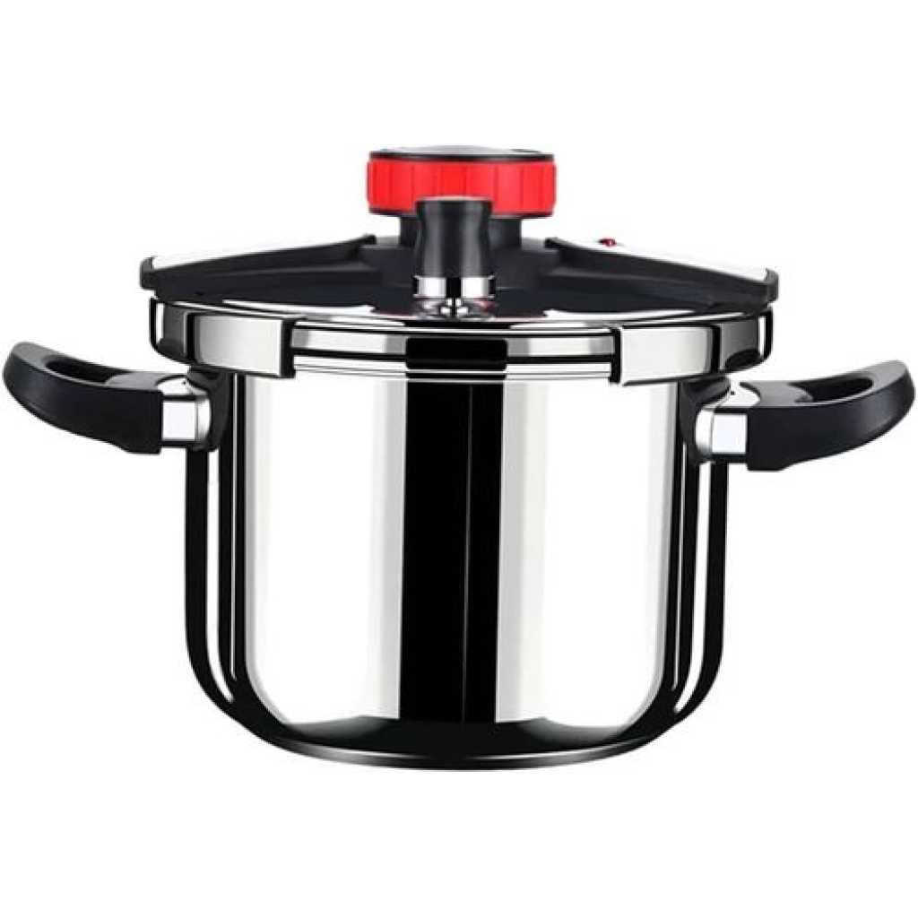[Safety First]Our pressure cooker ensures safety with multiple protective features. The rotary locking system allows smooth lid operation, with dual protection from the exhaust and pressure relief valves to prevent venting issues. The intelligent safety valve locks the lid under pressure and releases it if necessary. A thickened clamp lock, silicone ring, and anti-scald handle offer explosion prevention, heat insulation, and secure handling for worry-free cooking. [One-handed Lid Opening]Compared to traditional pressure cookers, this model features a significant innovation with its rotary lock system, allowing you to open and close the lid with one hand for ultimate convenience. [304 Stainless Steel Material] This 12QT pressure cooker is made of 304 stainless steel, with a thickened pot body that is highly durable, wear-resistant, and capable of withstanding high temperatures. It also has excellent rust and corrosion resistance. The food-grade material ensures safety, and the inner pot has a mirror-polished finish, making it easy to clean and offering a sleek, modern look that fits any kitchen. [Saves 70% of Cooking Time] This pressure cooker is significantly faster than electric pressure cookers or traditional pots. With a three-layer composite energy-concentrating bottom for rapid heat conduction, cooking rice takes only 5-7 minutes, soup can be prepared in 10-13 minutes, and meats are tender in just 10-12 minutes, greatly reducing cooking time and allowing you to quickly create delicious meals. [Suitable for Various Kitchens] While this pressure cooker is best suited for open flames, it is also compatible with induction cookers, ceramic stoves, gas stoves, and electric stoves. Its energy-concentrating base ensures versatility, accommodating various heating methods without issue.