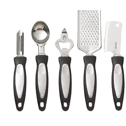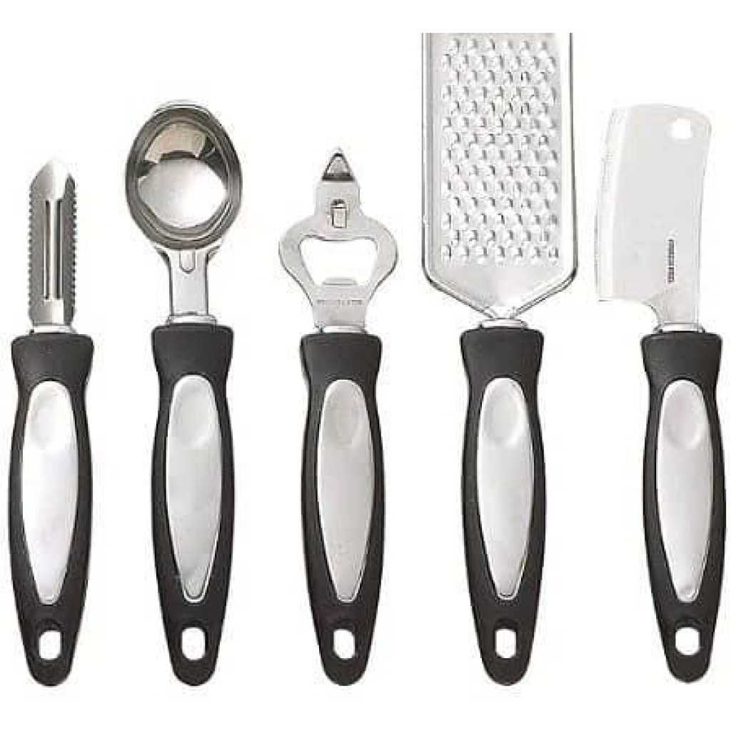 Key Features: Upgrade your kitchen with this 7-piece professional set, featuring a vegetable peeler, egg beater, fruit knife, bottle opener, and scissors with a nutcracker. The integrated storage box keeps your tools organized and accessible, ensuring you never have to worry about missing helpers during your culinary adventures. Create fluffy eggs effortlessly with this balloon-shaped whisk, perfect for whipping and inflating ingredients. The peeler, featuring a sharp and wide rotary blade, allows for minimal resistance while peeling various fruits and vegetables, including apples, cucumbers, potatoes, carrots, and more. Sharp scissors and knive can help you effortlessly slice such as peeling fruit and slicing vegetables, Onions and peppers etc.Sturdy and durable bottle opener help you open the lids of most beer bottles quickly, easily and efficiently. Crafted from advanced stainless steel material that is both rust and stain-resistant, this kitchen gadget set features ergonomic ABS handles, ensuring comfort even during long cooking tasks. This cost-effective set makes a great gift for friends and family who love to cook.
