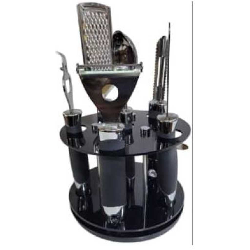 7 PCS Paring Knife Set Paring Knife set includes 7PCS paring knives. It can meet most of your kitchen needs. Keep this set handy at dinner parties or behind the bar to prepare garnishes for your favorite drinks or dishes. The entire collection is made to the highest sanitary standards and it’s ideal gift for family, friends, even pro chef. Precision Forged Blade Kitchen knife set has reinforced sharpness to achieve quick and effortless cutting, improving efficiency. Easy to Clean and Care Wash and wipe up the knife blade before or after use by washcloth. Store in the included knife block for next-time use. We are seeking perfect solutions for each kitchen We’re striving to help you get everything prepared efficiently and easy, you just need to enjoy and finish the cooking process. 7 IN 1 KITCHEN PEELER SET Our kitchen tool set contains; 1 Vegetable and Fruit Peeler, 1 Bottle Opener, 1 Fruit Knife, 1 Egg Whisk, 1 Vegetable Scissors and 1 standing storage base, true gadget organizer makes kitchen life easy and tidy.