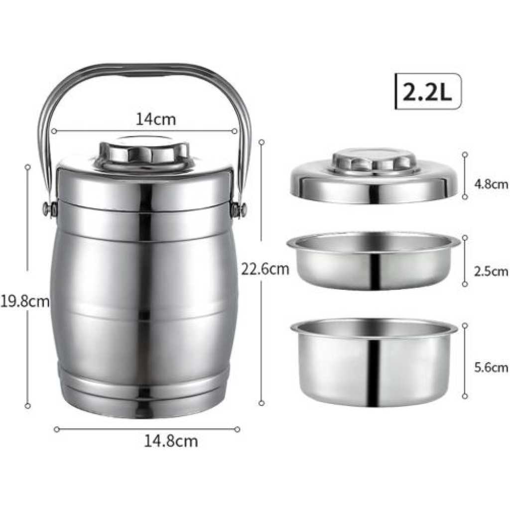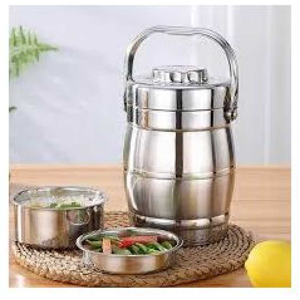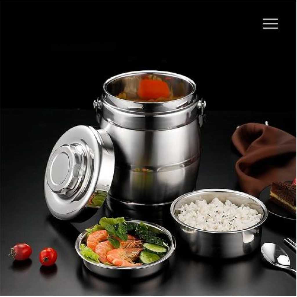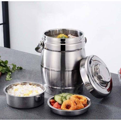 Stainless Steel Insulated Lunch Box: This lunch box is made of stainless steel, ensuring durability and long term insulation for your meals. Three Layer Design: With its three layer design, this lunch box provides ample space for storing different types of food, allowing you to enjoy a variety of dishes in convenient container. Large Capacity: The large capacity of this lunch box makes it perfect for students and working professionals who need to pack substantial meals for the day. Heat Preservation: The insulated design of this lunch box effectively keeps your food warm and fresh for hours, allowing you to enjoy a hot meal even when you’re on the go. Ideal for Students and Professionals: Whether you’re a student or a working professional, this stainless steel insulated lunch box is an excellent choice for conveniently carrying your meals while keeping them warm and delicious throughout the day. Product Description: – Material: Stainless Steel – Color: Silver – Technical data: 3 layers – Capacity: 10L Package List: 1 x Food Container 1 x Blister Note: – This lunch box is made of 2 layers of vacuum insulation material, the insulation can usually be broken in about 3 hours. Certain aging depends on the temperature difference between food and local climate.