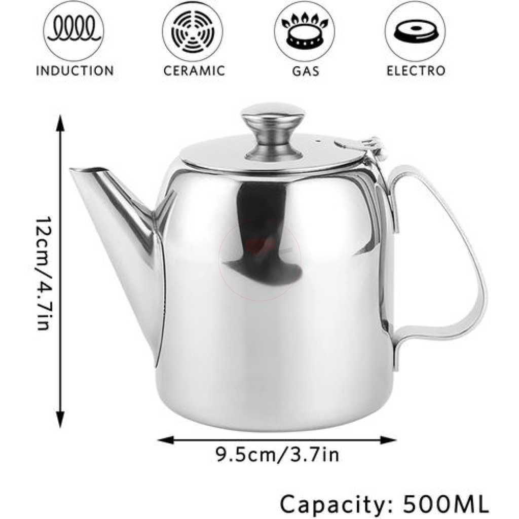 Key Features: 800ml Stainless Steel Teapot Kettle With Flip Lid Water Jug Perfect Pour Spout, Silver. Perfect inverted spout: Teapot with flip lid, no overflow spout, ergonomic handle, comfortable to hold, open style, easy to refill and easy to clean. Elaborately built: The tea pot is made of high quality stainless steel, which has been carefully processed to make it more durable, not easy to deform, mirrored and polished, and reliable in use. Can be washed in the dishwasher: The stainless steel teapot is light in size and weight, easy to carry and store, and can be washed in a dishwasher, which is easy to clean. 2 medium capacity options: Teapot with lid, capacity 20oz/32oz, suitable for the production and service of milk, tea, coffee, and beverages. Simple appearance: Simple and elegant appearance, very suitable for table decoration, buy family use or gift to friends.