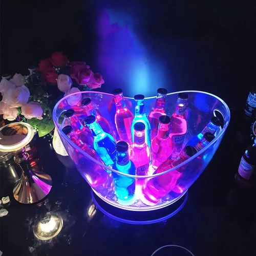 8L Led Ice Bucket Color Changing Plastic Champagne Wine Ice Bucket Multi-colours. Professional technology of led color changing allows the ice bucket to be converted to a variety of colors at any time, and the color gradually changes to suit every occasion and atmosphere. LED ice bucket is a perfect accessory for a bar, party, club, or any place of amusement for decoration or interspersion. The ice bucket is made from premium quality food-grade PP, extremely sturdy and lightweight, never fear it will snaps under pressure Key Features: 8L Led Ice Bucket Color Changing Plastic Champagne Wine Ice Bucket Multi-colours . 【LARGE CAPACITY】8 Liter capacity, Good for up to 750ml wine champagne and a half-dozen 330ml beer Ice Bucket 【SAFE MATERIALPE】environmental-friendly protection material, Waterproof, anti-fall 【EASY OPERATION】A single push-button on the underside of the Light-Up Ice Bucket turns the bright LED lights on and off 【LED COLOR CHANGING】Led Waterproof with Colors Changing, Power by 2 AA Batteries(batteries not included), allows the ice bucket to be converted to a variety of colors at any time 【PERFECT FOR ENTERTAINING】Makes any occasion more festive. Perfect for indoor-outdoor bars, celebrations, BBQ, cookouts, and all parties or events. Also can be used as a great centerpiece vase for large floral arrangements and Christmas parties!