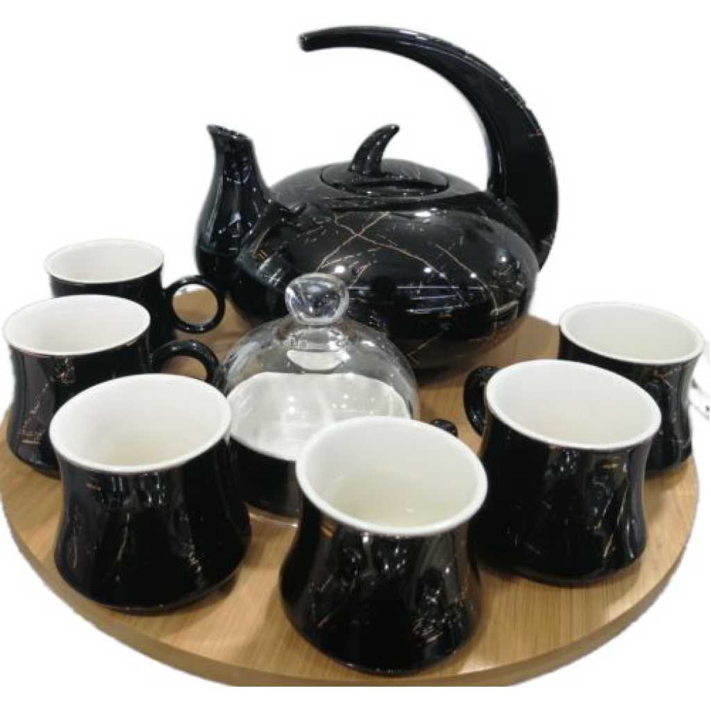 Key Features: 8Piece Cuppucino Tea Coffee Mugs Cups, Teapot, And Bamboo Tray Set- Black. Color: Black High-quality Ceramic 6 Pieces Coffee set Has a Ceramic tray for easy service Great for daily use
