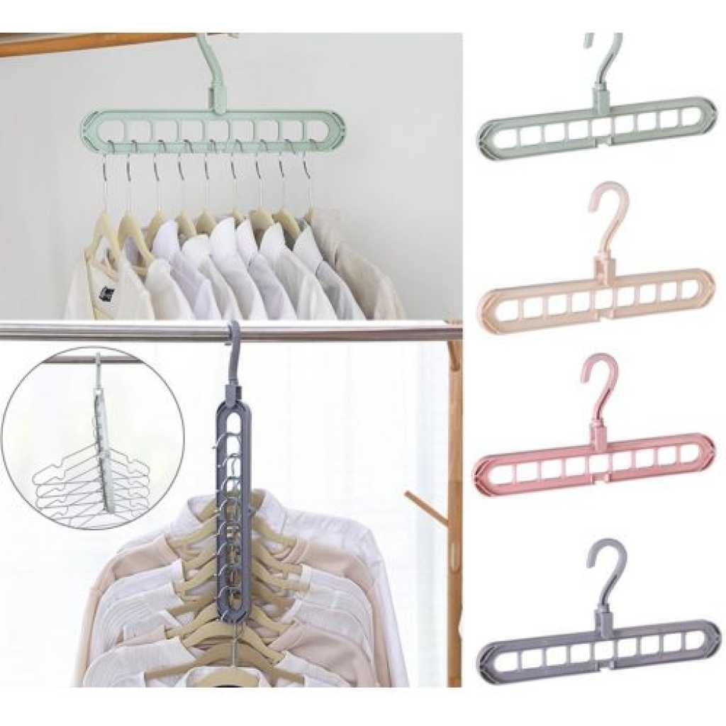 Key Features: 9 Hole Clothes Hanger Closet Organizer – Cream. Space-Saving Design: Anti Slip Cap. Adjustable Rod. Each magic rack has 9 slots Made of thick PP material It is stronger than ordinary plastic hangers. Smooth chute. Easy to move the hook and save space horizontally. Suitable for clothing arrangement, hanging shirts, t-shirts, short sleeves, coats, dresses, hats, ties, etc.