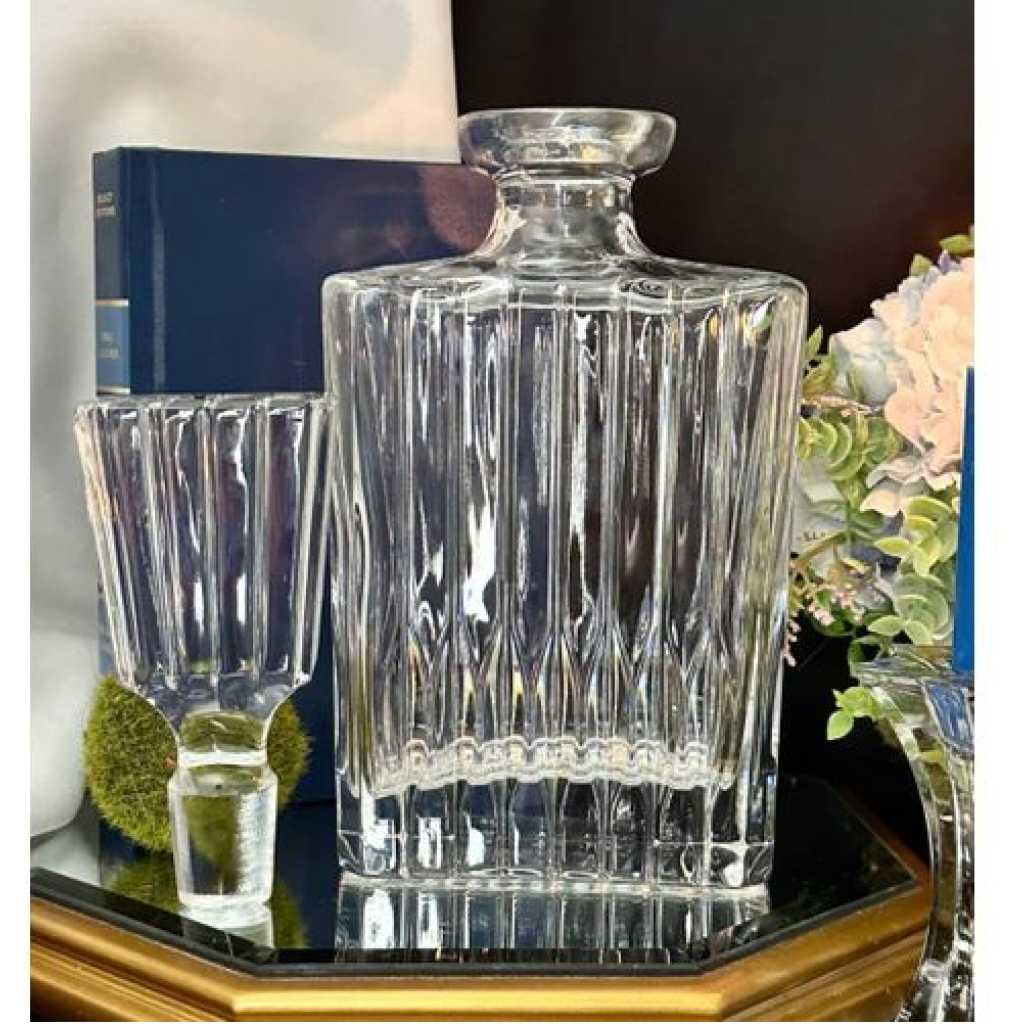 Key Features: Timeless Classic Decanter】Enjoy a smooth glass of scotch or bourbon in the office or den with this whiskey decanter,Inspired by vintage barware, the iconic diamond-cut glass radiates sophistication. Decanter shimmer in the light and start your tipsy time. 【Lead-Free Crystal decanter Bottle 】The whiskey bottle is made of lead-free ultra clear glass to ensure safety for safely store your whisky , brandy,scotch and other beverages you like. The premium whisky decanter set is Machine washable and hand.washable,Engravedartwork.Recyclable. 【Unigue and Stylish 】The Classic design is fantastic and modern, elegant and gorgeous,Twisted design make it more special, not only a glass, but also an artwork.The resulting legacy of quality and beauty makes our products a showpiece for any home. When you see the liquor decanter filled with whiskey,the mood becomes instantly pleasant.Enjoy your beloved whiskey. 【Airtight Stopper】large stopper on the mouthwash decanter is easy to grasp and remove. Sealing glass stopper can prevent the evaporation of alcohol and the contamination of outside gases.PLS TWIST THE STOPPER INSTEAD OF PULLING OUT DIRECTLY. 【More Details】This whiskey bottler 27 oz capacity -Sealing glass stopper can prevent the evaporation of alcohol and the contamination of outside gases.Easy to open , reproducible seal. -Machine washable and hand washable -Engraved artwork – Recyclable.