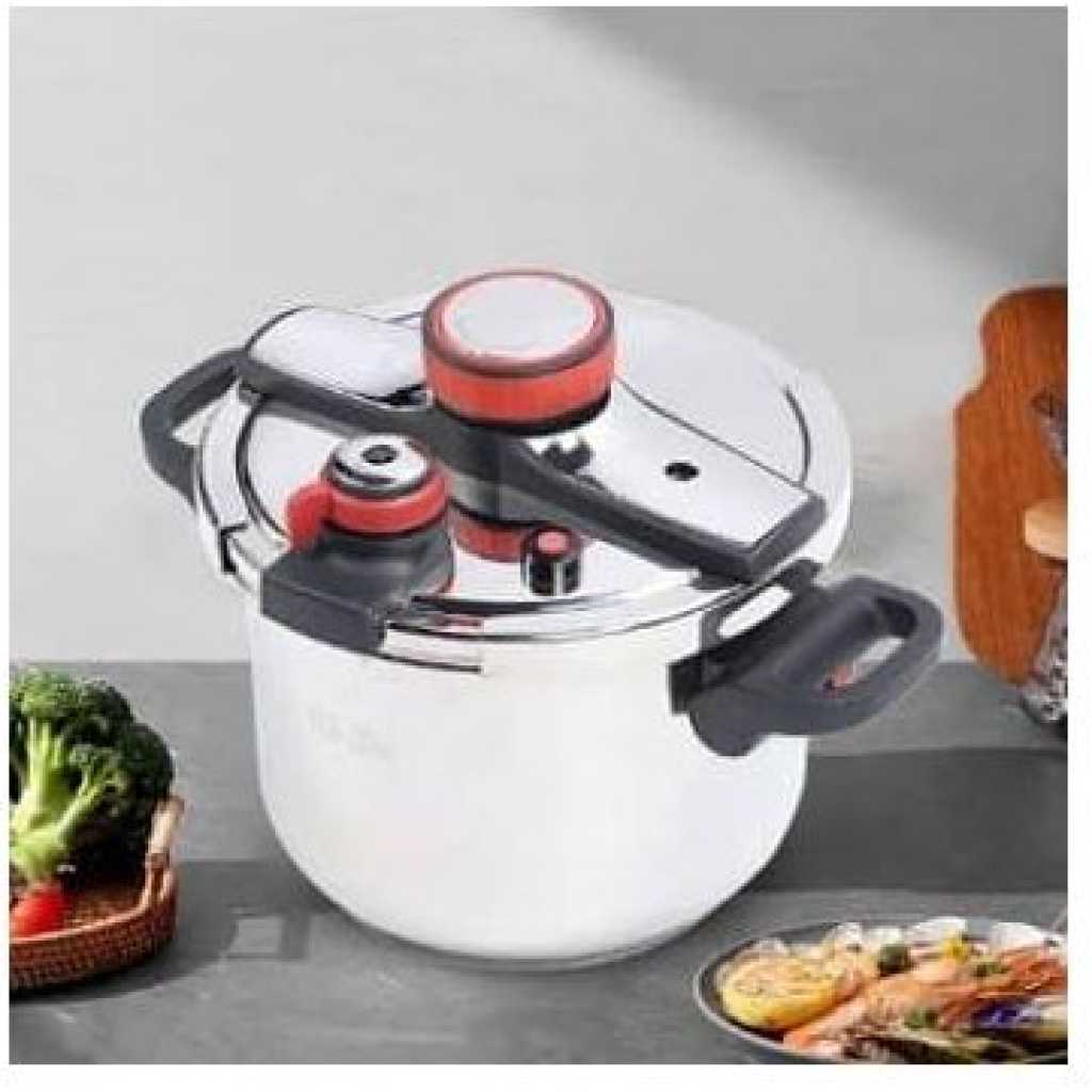 Key Features: [BENEFITS]Pressure cooker made of stainless steel, developed with German technology, reduces cooking time by up to 70% (depends on the heat source.) It is ideal for foods such as chicken, red meat, fish, rice, corn , legumes, desserts and much more. Completely safe and durable [DURABLE STEEL CONSTRUCTION]Discover the power of our pressure canner, designed to provide a long-lasting and reliable performance, even heating, and easy maintenance, making it the perfect tool to master the art of home canning. [COMPATIBILITY]This pot, being made of stainless steel, is compatible with all types of stoves such as: gas, induction, ceramic, halogen and electric. [HEALTHY KITCHEN]Our express cookers keep the vitamins and minerals in the food, which translates into tasty and nutritious meals for the whole family. The inside surface is made of Stainless steel that prevents food from sticking and makes cleaning easier.