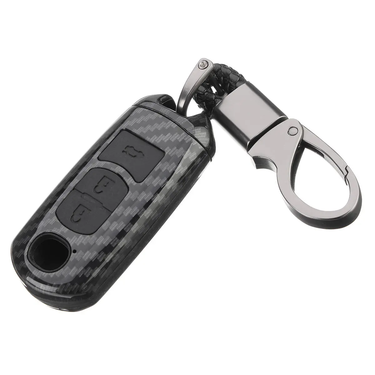 Kun US$28.99, køb den bedste ABS carbon fiber fjernbetjent bilnøgle taske / cover med nøglering til Mazda 3 Axela 2017-18-onlinebutik til engrospris.