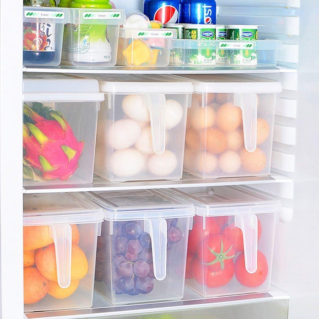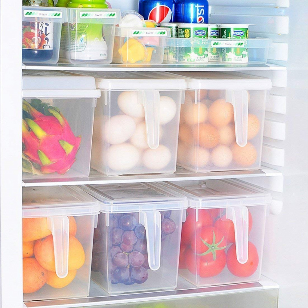 Key Features: Save space and get quick & easy access to your favorite foods and pantry items, you will save time and have a better idea of which food items you have on hand, organize bins by food categories Easily store kitchen staples and pantry supplies like chips, cookies or a large soup, rice, flour, sugar, and beans in these sturdy containers. Plastic containers with lids are made of high-quality plastic. these plastic food containers are meant to be your best storage solution which is built for last. Our food storage set has an ergonomic handle for effortless carrying and stacking. These food storage bins help to maintain visual access to the contents of your fridge, freezer or pantry, saving you precious time and effort. It also works great in the garage, bathroom, or bedroom for organizing craft supplies, sewing supplies, office supplies, classroom items, decorations, makeup, smaller bedroom items,