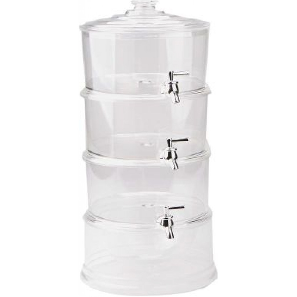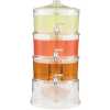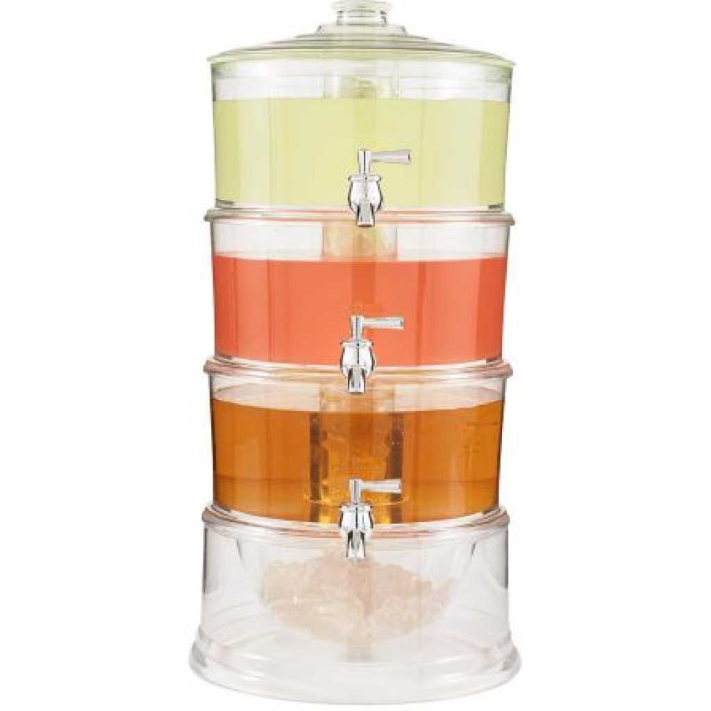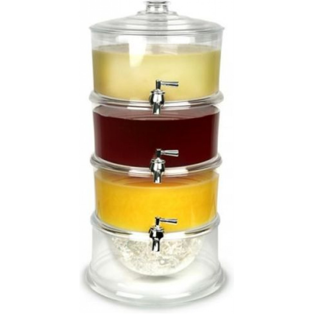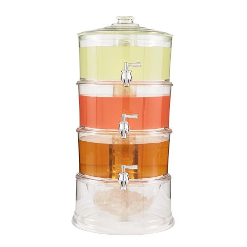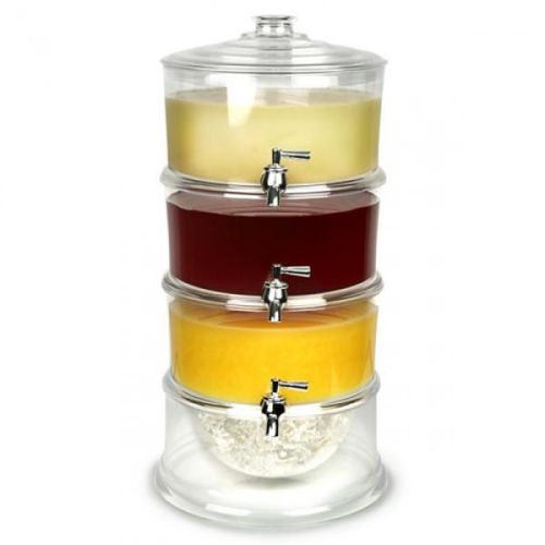 For effortless drinks service, this 3-Tier Drink Dispenser allows you to serve up to 3 different drinks all in one convenient beverage tower. The independent design of the dispensers and spigots makes this the perfect solution for serving different types of drinks from the same location in the room. Perfect for parties and buffets. For increased functionality, this tower features an easy pour tap and an ice storage base. With an easy to re-fill design, each layer can be replenished separately and simply. This beverage dispenser offers the ultimate drinks services for busy events and parties, saving you time and fuss. Key Features: Features independent stackable tiers and spigots so that each can dispense different drinks, and can also be used as a 1 or 2 tier dispenser Chambered base stores cubed or crushed ice to chill liquids and keep them cold, and integrated cooling shafts hold additional ice to chill better at center of each tier Easy to re-fill design, each layer can be filled separately and easily Made of durable, break-resistant and shatterproof acrylic, BPA free, height: 19.7 inches; each layer holds 3.5 liters Suitable for serving juice, cocktails, lemonade and punch, for parties, BBQs, buffets and catered events