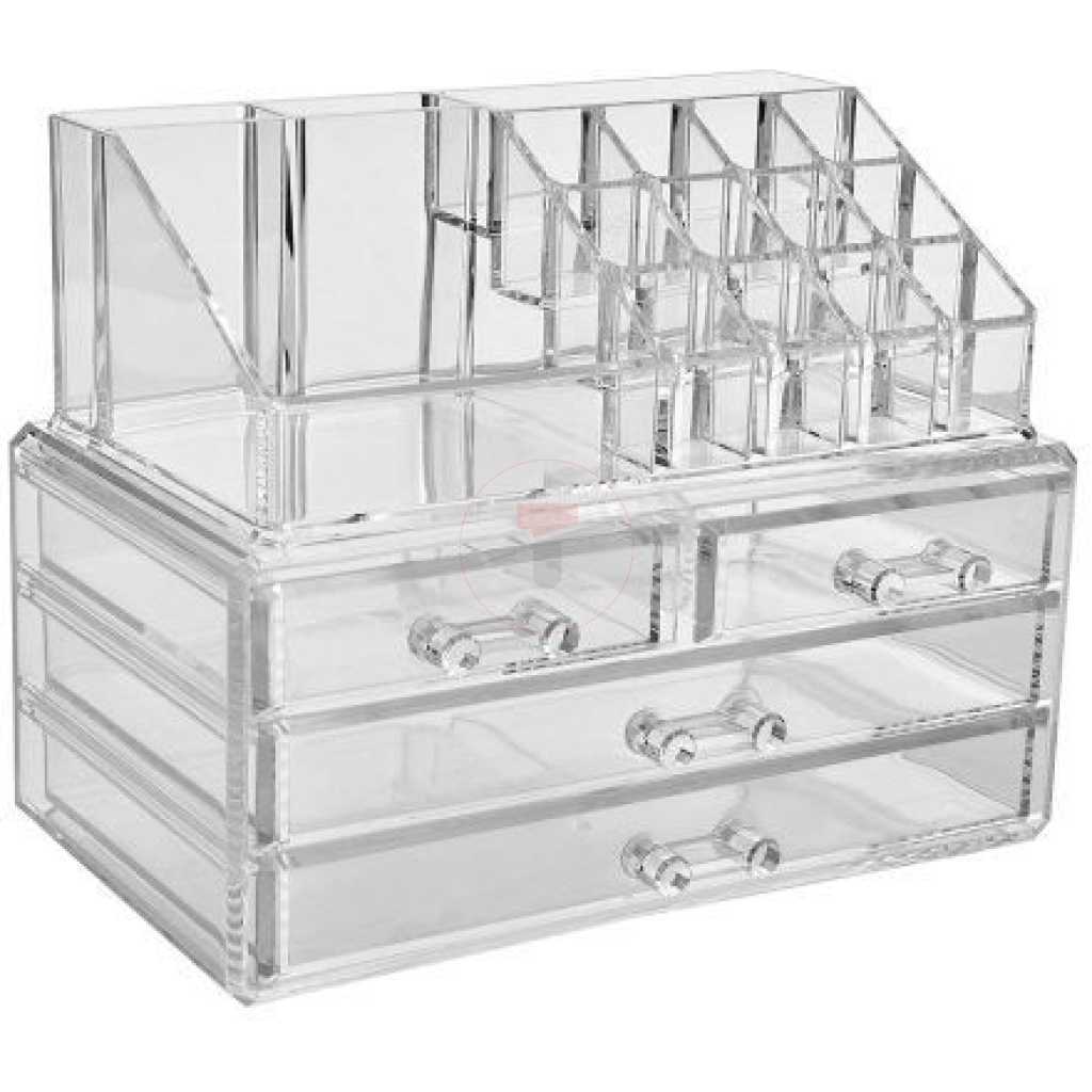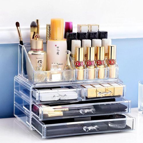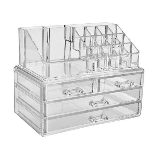 Acrylic Cosmetics Makeup Organizer Storage Box Drawers- Clear. 1、The top section contains 4 compartments of various sizes and a lipstick rack for holding up to 12 lipsticks. 2、This acrylic jewelry & makeup 4 Drawer organizer is perfect for organizing lip liners, eyeliners, makeup, lip glosses and jewelry, and more. 3、It’s a space-saving accessory that keeps your makeup neat and organized. 4、Material Acrylic: Acrylic is a useful, clear plastic that resembles glass. But it has properties that make it superior to glass in many ways. It is many times stronger than glass, making it much more impact resistant and therefore safer. Notice: ※Although it has a hard and clear surface, please avoid sharp scratches to keep its aesthetic. ※Acrylic also insulates better than glass or plastic, but please don’t close to the source of ignition to avoid damage. ※Cosmetic organizer isn’t an Anti-Pressure product, please don’t place too heavy articles.