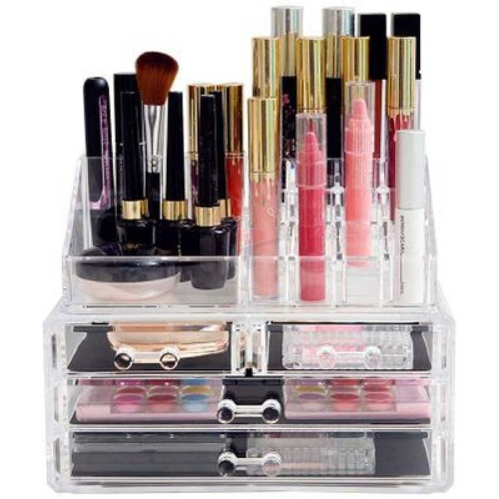 Key Features: Acrylic Cosmetics Makeup Organizer Storage Box Drawers- Clear. PREMIUM ENVIRONMENTAL FRIENDLY MATERIAL: ZHIAI makeup organizer made of High-Quality acrylic plastic which is a clear plastic that resembles glass but is much stronger and safer than glass – Design size approximately 9.4” L x 5.4” W x 7.4” H. BEAUTIFULLY DISPLAY & STORE: Cosmetic storage boxes are great for your bathroom, vanity, and countertop. Makeup organizer has compartments of various sizes and shapes – Can use to store jewelry, Personal accessories, Grooming tools, Keepsakes, Lipsticks, Foundations, Eye shadows, etc. FUNCTIONAL & CONVENIENT: Keep makeup and accessories organized and easily accessible — Reduce clutter, Save time getting ready, and gain space — Convenient slot compartments on the top level keep items protected upright. PERFECT GIFT ITEM: Cosmetic display case coordinates beautifully with most decor Great makeup organizer for moms, Women, Girls, Teens, Adults, Beauty, Fashion, and makeup mover