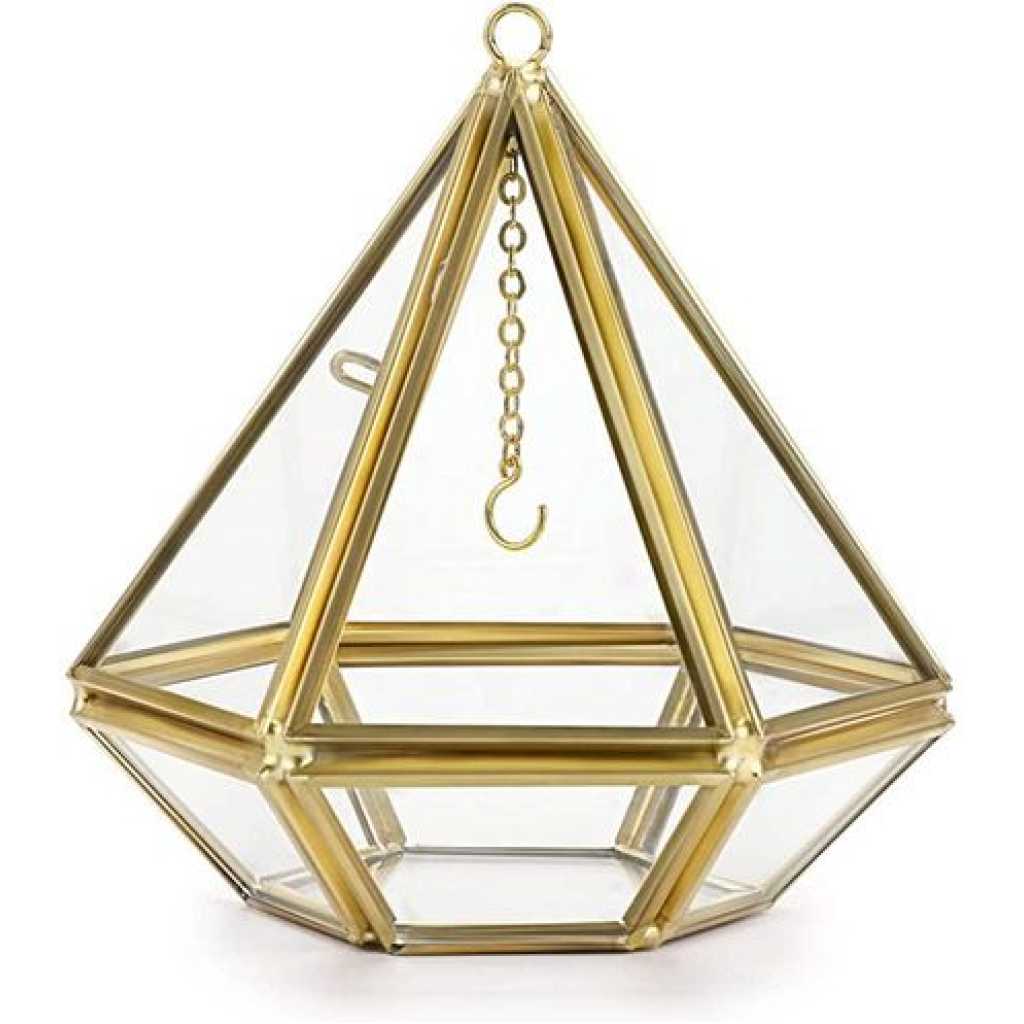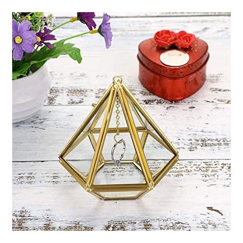 Acrylic Ring Display Holder Geometric Jewelry Box Wedding Gift Box Hanging Prism Stand Proposal Ring Display Case (Diamond Shape) Most girls and women like romance, and surprises…a small gift can make her happy all day long Do you want to surprise her on special days like birthdays, anniversaries, or Festivals …?Are you looking to add a special touch to your proposal, engagement, or wedding? Well, our uniquely designed ring box is the ideal choice! Features: – Our modern geometric triangular pyramid ring box is sturdy, and not easily broken; – Each wedding ring box is carefully made and precision cut by a craftsman; – The ring holder is open style, and a hook is available for you to hang the ring or other items easily; – Unique design great accessory for weddings, engagements, parties, and home decoration; -This jewelry box is enclosed design, and can safely hold wedding rings, engagement rings, anniversary rings, earrings, Valentine’s Day gifts, white day gifts, and more; – Perfect as a wedding gift, bachelorette gift, bridesmaids’ gift, or Christmas gift. Specification: ✬Material: Metal+Glass ✬Color: Gold ✬Size (L*W*H) :3.94″x 3.94x 3.74”/ 10 x 10x 9.5cm ✬Net Weight: 0.38 lb / 175g package:1xPolygonal Prisms Glass Ring Box Clear Glass & Beautiful Gold Metal – This ring display holder is made of sleek glass and premium metal, durable quality. The metal frame is carefully finished with beautiful gold color, clear glass design allows you to see all sides of your gift box. Creative Design – Unique polygonal prisms design, gold metal frame, and clear glass, modern art design style make it looks special. Elegantly suspend the wedding rings in the middle of the Prism by placing them on the dainty chain and hook that drops down from the top of the holder. Each ring box has 1 opening like a small door with a little bolt, it’s more like a small glass house for your ring, So cute! A Creative & Sweet Gift for Girls or Women – Perfect as a storage case for earrings, rings, necklaces best gifts for girls and women, ladies, girlfriend gifts, mothers Day gift ideas, and more. Also, use it as a wedding ring bearer box or engagement gift keepsake! Surprise her with this interesting ring box! ( Jewelry not included ) Practical & Unique Decor-This pyramid ring stand is enclosed, so you can toss small pairs of earrings and other things into the holder for keeping, Can use this box in your bathrooms or in the kitchen where next to the sink, to keep your jewels getting wet. It is so unique and looks like a piece of special decor that can light up your place and brighten everyone’s eyes Portable & Easy Clean – Length:3.94 inches, Width: 3.94 inches, Height:3.74 inches; Net Weight: 0.38 lb / 175g; Please clean the ring box with glass cleaner and a soft cloth.