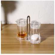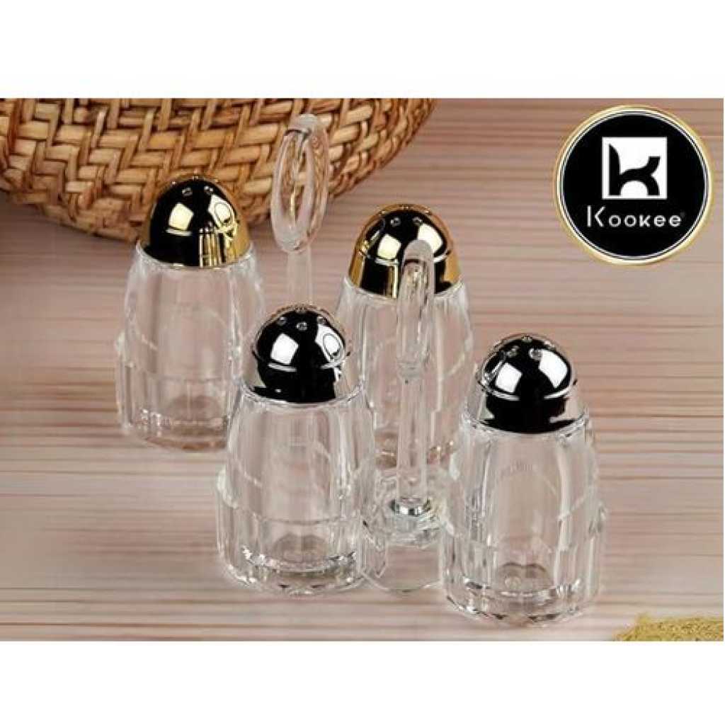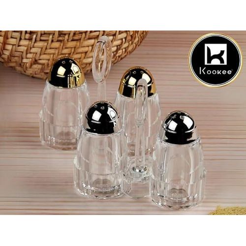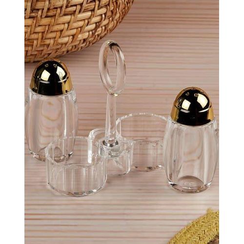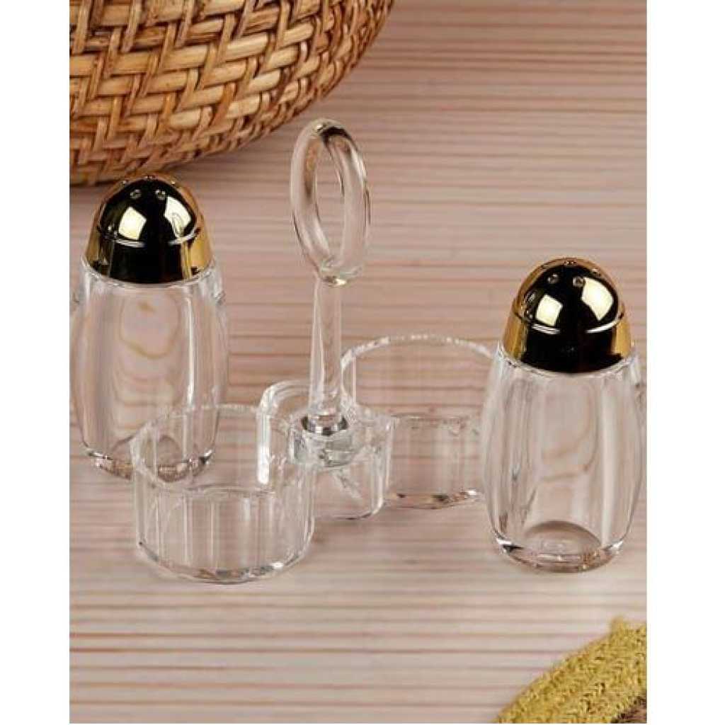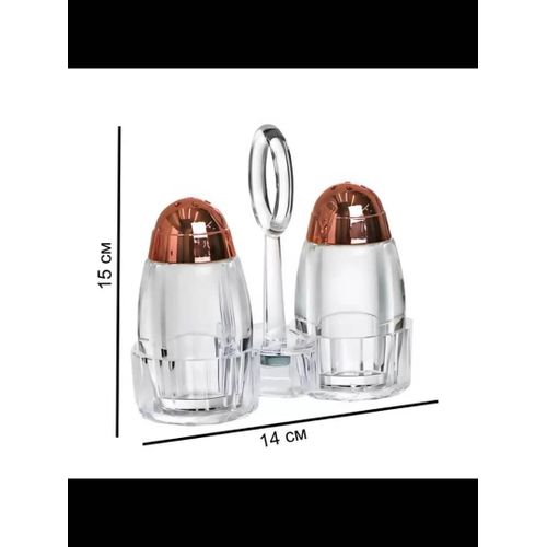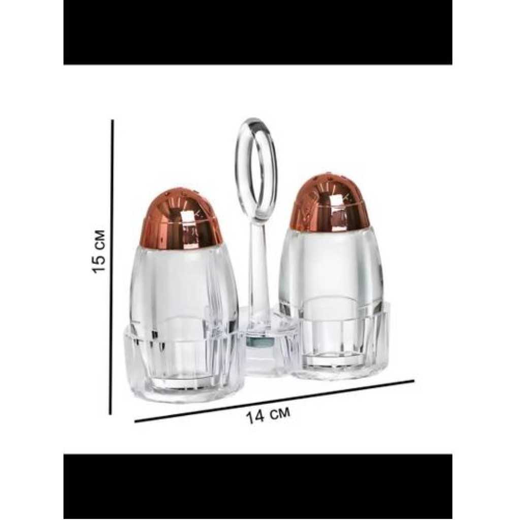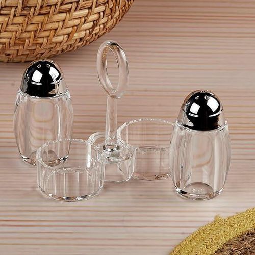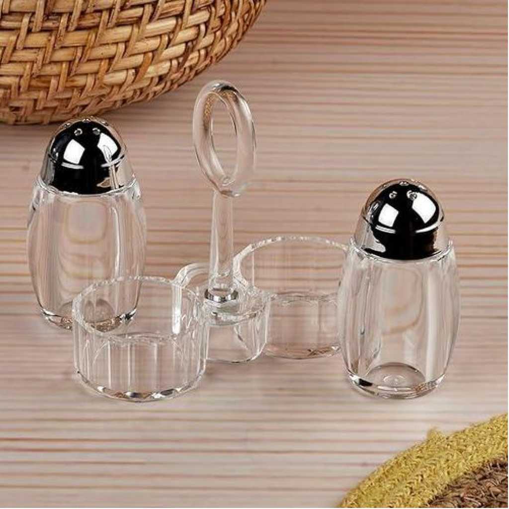 Acrylic Salt and Pepper Shakers Set with Tray for Dining Table Used as Namak Dhani, Shaker, Sprinkler, Spices Dispenser for Home, Kitchen and Restaurant, Transparent Cruet Set