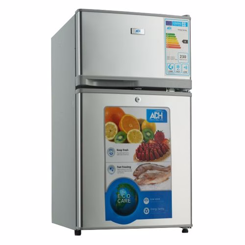 ADH BC-98 120 – Litres Fridge, Top Mount Freezer Double Door Refrigerator – Silver Sleek and Beautiful : ADH Refrigerator is amazing! This fridge is perfect for a small office, dorm room, kitchen or playroom. The compressor cooling fridge will keep your drinks and food at a perfect temperature. With the built in freezer you can store your dinner, ice cream or other snacks! Design : There is a door bracket to neatly store your drinks. Slide out shelving makes it easy to clean the inside of your fridge. This is a high quality fridge and freezer with a reversible door so you can fit this bar fridge in any spot. With built in temperature control and low energy consumption, this refrigerator is the ideal solution for anyone looking to cool and freeze! Technical Specifications Voltage: AC 187-240V Frequency: 50/60Hz Input Current: 0.8A Power Output: 0.08kW Key Features: ADH BC-98 120 – Litres Fridge, Top Mount Freezer Double Door Refrigerator – Silver Gross Capacity: 120 Litres Net Capacity : 98L Refrigerant: R134A/50g Insulation Blowing Gas: Cyclopentane Temperature Range: 0-10°C Uses German technology