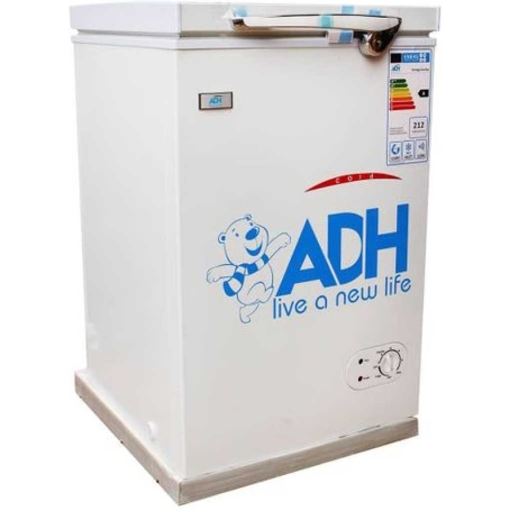 ADH BD-130 130 – Litres Chest Freezer, Single Door 130L Deep Freezer – White. Offering you a reliable freezing performance, the ADH 150L Chest Freezer – 150Litre is an ideal appliance for every home and store. You can have peace of mind as the highly efficient compressor makes sure your food items are safe and sound. It also comes with a removable storage basket and a Fast Freezing Function. The fridges comes in a Blue or Off white Colour Key Features: ADH BD-130 130 – Litres Chest Freezer, Single Door 150L Deep Freezer – White. Chest freezer 150L White/blue /silver 220v -240v Low power consumption 1year warranty on compressor and cabinet