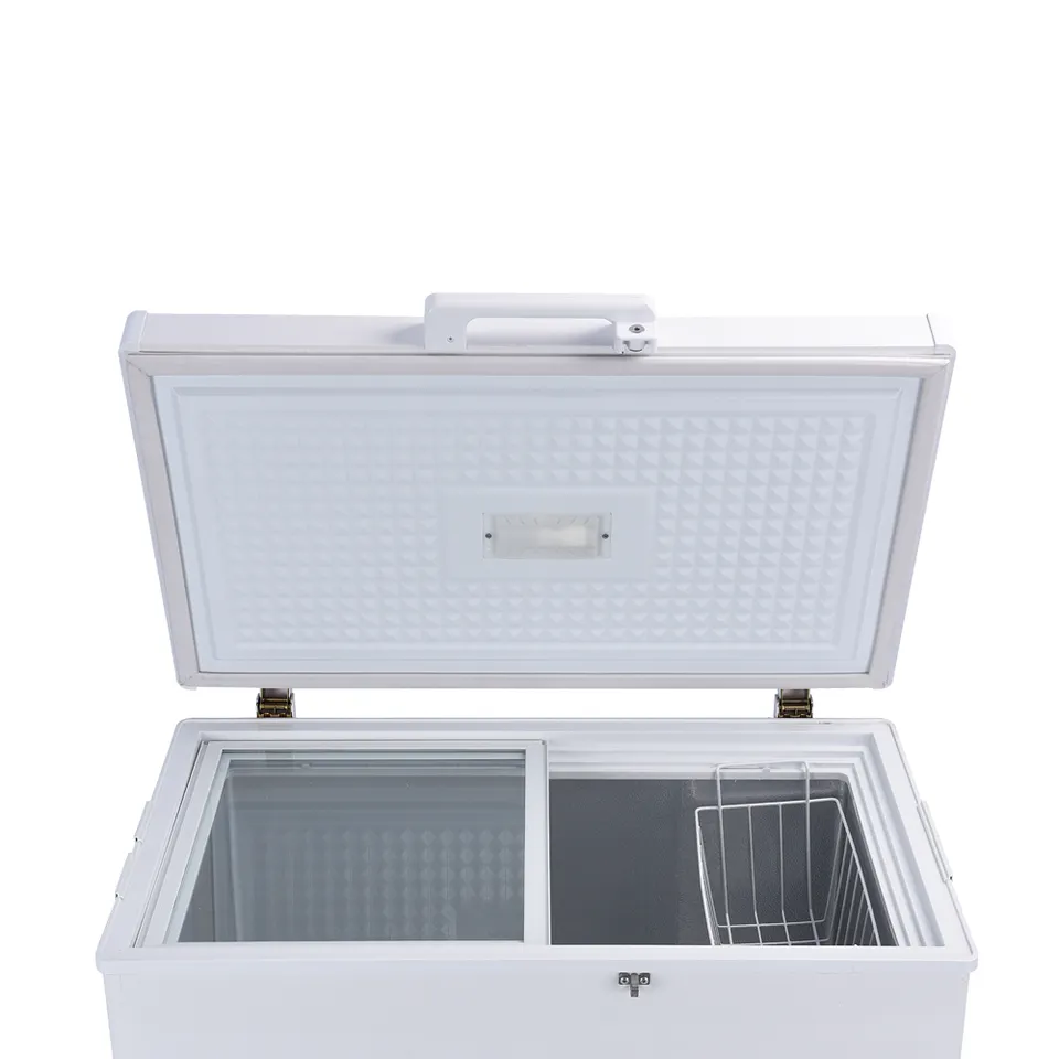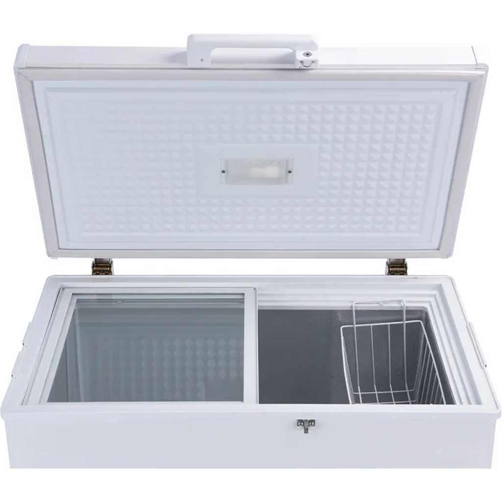 Offering you a reliable freezing performance, The ADH 200 Litres DC Chest Freezer is an ideal appliance for every Business. You can have peace of mind as the highly efficient compressor makes sure your food items are safe and sound. It also comes with removable storage basket and a Fast Freezing Function. ADH Chest Freezer features a greater inner design which the energy is very efficient. The bright inner design will let you find the right food in a short time and also keep cold-air as bonus to save your money. Highlights: Energy-efficient: To operate solar Freezers, all that you will need is a single 250-watt panel and a couple of deep cycle batteries. These solar Freezers are specifically designed to maximize energy efficiency. Safe and clean energy source: Running on just solar power, it is the most reliable and purest form of energy. These DC Freezers are mostly of volts, so the chances of accidents related to traditional ways of power are almost null. Easy installation: If you have an existing solar system installed at your place, then you can plug it with the current batteries, and your deep freezer is ready to go. Specifications Size: 200 Litres Low Power Consumption single door High Quality Strong & Durable Very Lovely & Economical Easy-to-clean interior Fast Freezing Function High Efficiency Compressor Key Features: Size: 200 Litres Low Power Consumption single door High Quality Strong & Durable Very Lovely & Economical Easy-to-clean interior Fast Freezing Function High Efficiency Compressor