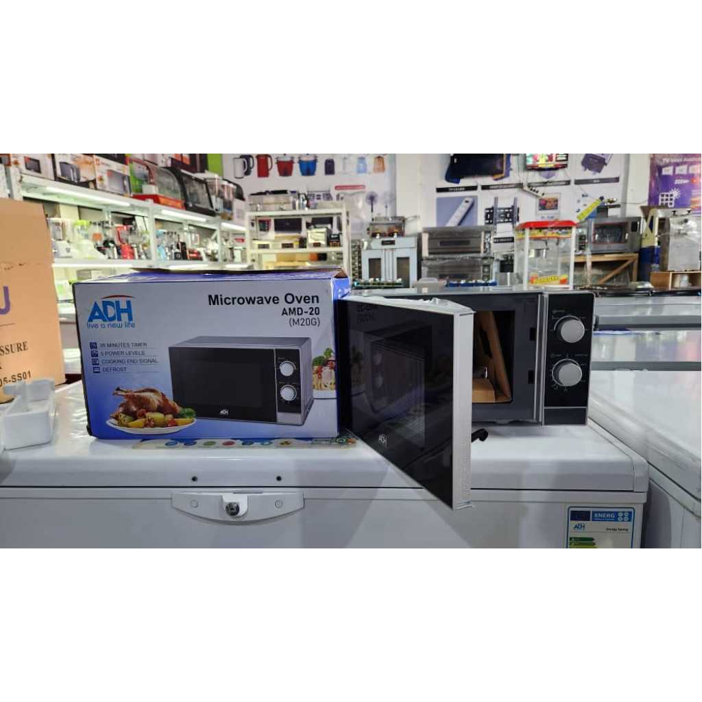 ADH 20L Microwave Oven AMD-20 M20G. 35 minutes timer Defrost function 5 power levels cooking end signal Control knobs Key Features: ADH 20L Microwave Oven AMD-20 M20G. 35 minutes timer Defrost function 5 power levels cooking end signal Control knobs