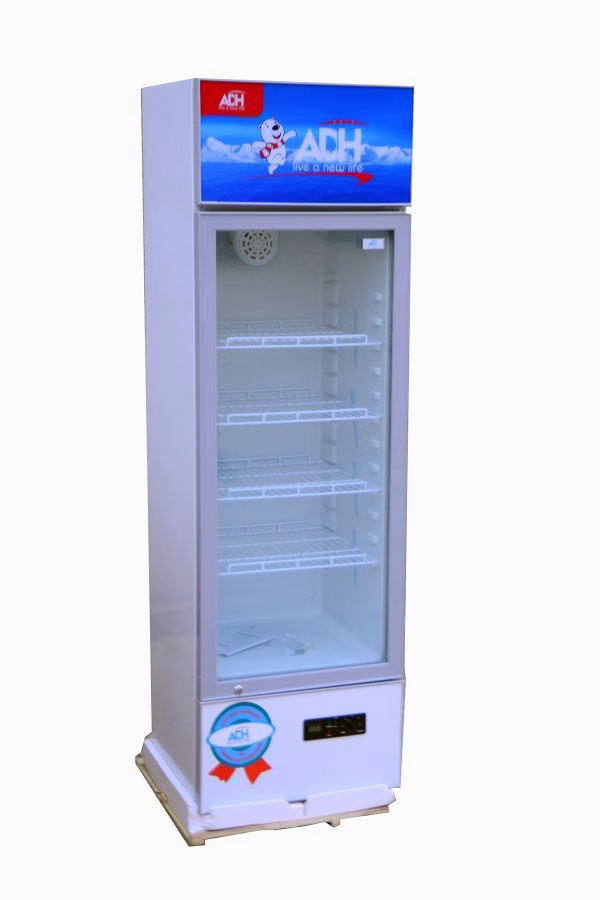 Key Features: ADH 235-Litre Single Display Cooler SC235; Vertical Display Chiller, Single Door Display Beverage Showcase Refrigerator – White. Gross Capacity: 235Litres Refrigerant: R134a/66g Insulation Blowing Gas: Cyclopentane Temperature Range: -10 – +10°C Uses German technology Climatic Class: ST Refrigerator: 1 Fruit & Vegetable: 1 Fridge Shelves: 4 Ice Tray: 1 Door Rack: 3 Egg Rack: 1 Defroster: 1 Voltage: AC 187-240V Frequency: 50/60Hz Input Current: 1.0A Power Input: 0.12kW