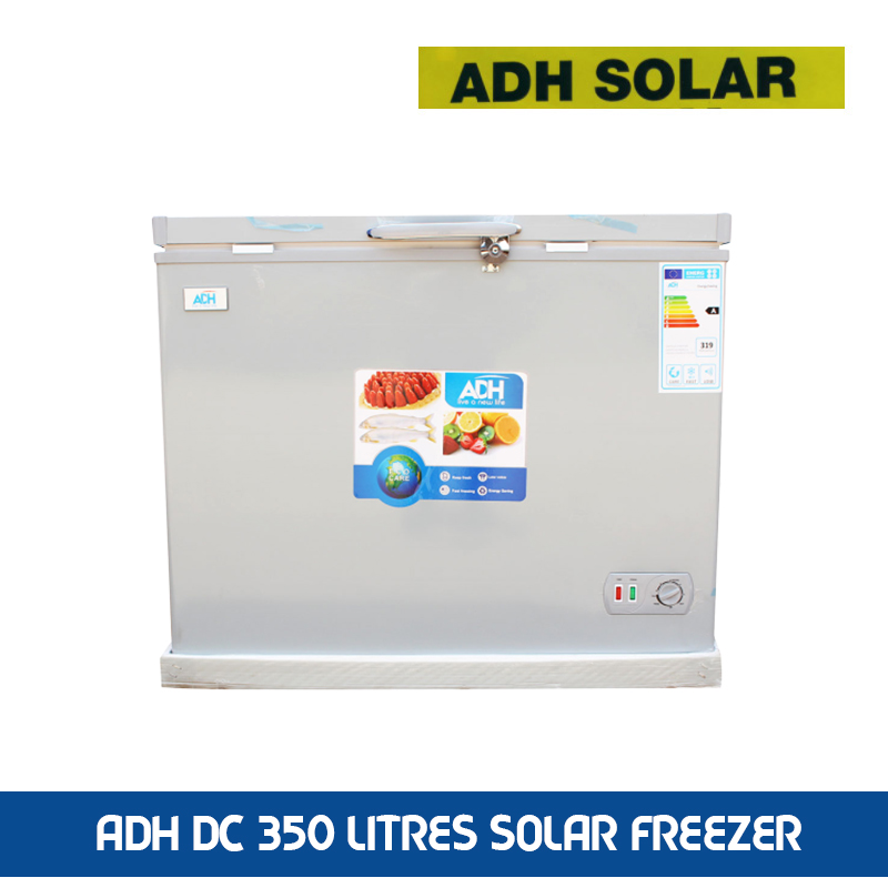 Offering you a reliable freezing performance, The ADH 350 Litres DC Chest Freezer is an ideal appliance for every Business. You can have peace of mind as the highly efficient compressor makes sure your food items are safe and sound. It also comes with removable storage basket and a Fast Freezing Function. ADH Chest Freezer features a greater inner design which the energy is very efficient. The bright inner design will let you find the right food in a short time and also keep cold-air as bonus to save your money. Highlights: Energy-efficient: To operate solar Freezers, all that you will need is a single 250-watt panel and a couple of deep cycle batteries. These solar Freezers are specifically designed to maximize energy efficiency. Safe and clean energy source: Running on just solar power, it is the most reliable and purest form of energy. These DC Freezers are mostly of volts, so the chances of accidents related to traditional ways of power are almost null. Easy installation: If you have an existing solar system installed at your place, then you can plug it with the current batteries, and your deep freezer is ready to go. Specifications Size: 350 Litres Low Power Consumption single door High Quality Strong & Durable Very Lovely & Economical Easy-to-clean interior Fast Freezing Function High Efficiency Compressor Key Features: Size: 350 Litres Low Power Consumption single door High Quality Strong & Durable Very Lovely & Economical Easy-to-clean interior Fast Freezing Function High Efficiency Compressor