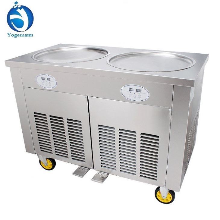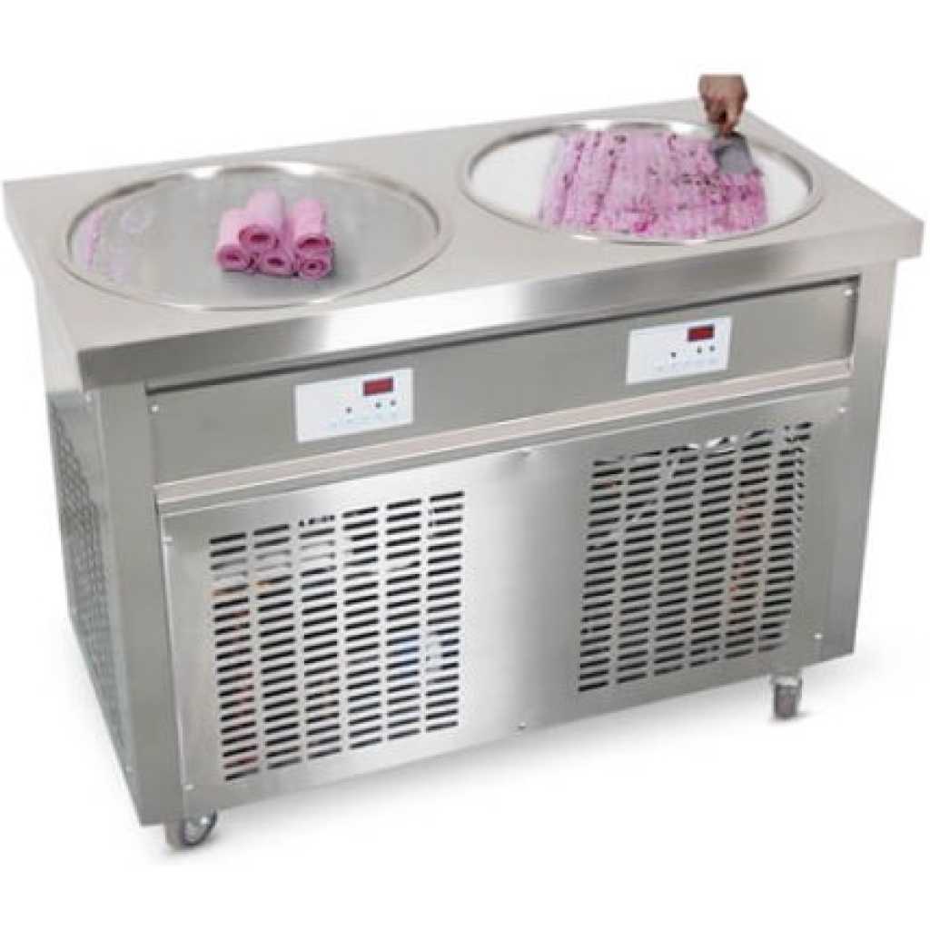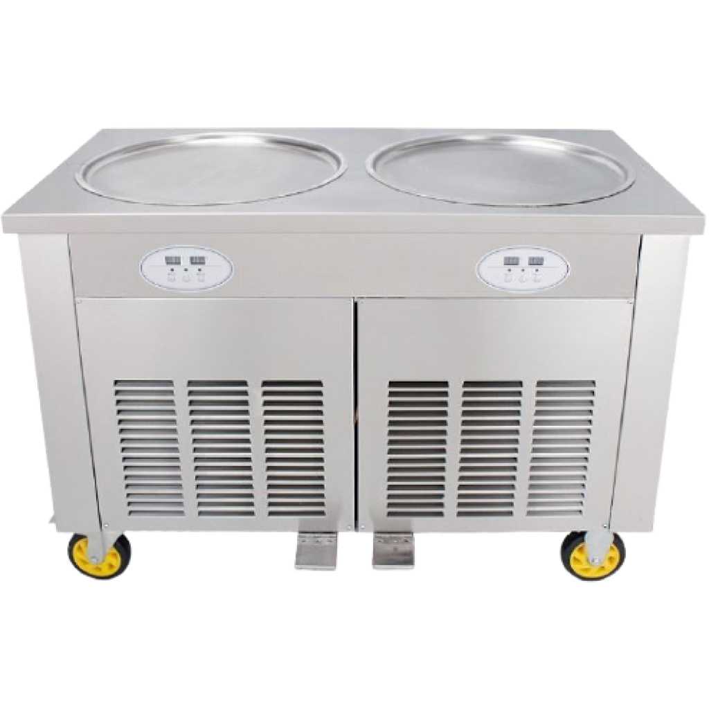ADH Fried Ice Cream Machine -Double Pan Key Features: Condition: New Pan type: Doyble round pan Pan size:36*36*6cm Power:1.8kW Voltage:220V