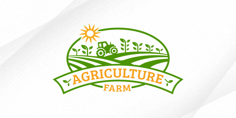 Agriculture Farm Land With Tractor And Plant Logo