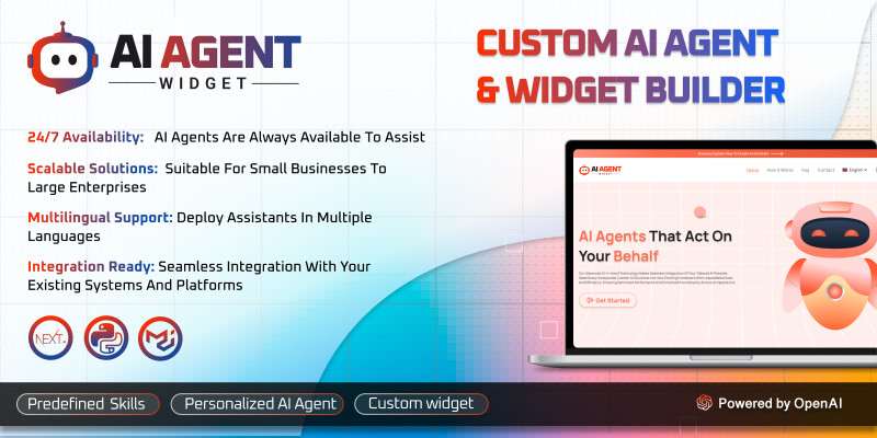 AI Agent Widget - Chat Support Platform Python. AI-powered chat support platform with Python backend and Next.js frontend, enabling customizable AI agents and chat widgets