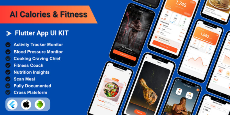 AI Fitness Calories Flutter UI Kit. AI Fitness & Nutrition Flutter UI Kit. 60+ screens for complete workout, meal & health tracking