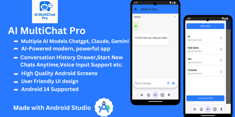 AI MultiChat Pro – GPT Claude Gemini DeepSeek. A modern, powerful, and elegant Android chat app that lets users interact with multiple leading AI models from one sleek interface