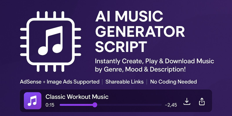 AI Music Generator. AI-powered music generator that creates and plays music based on genre, mood, and description with download and share options.