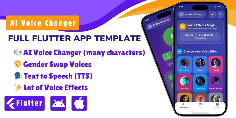 AI Voice Changer - Flutter Voice Changer App. AI Voice Changer – Instantly transform your voice into multiple characters.