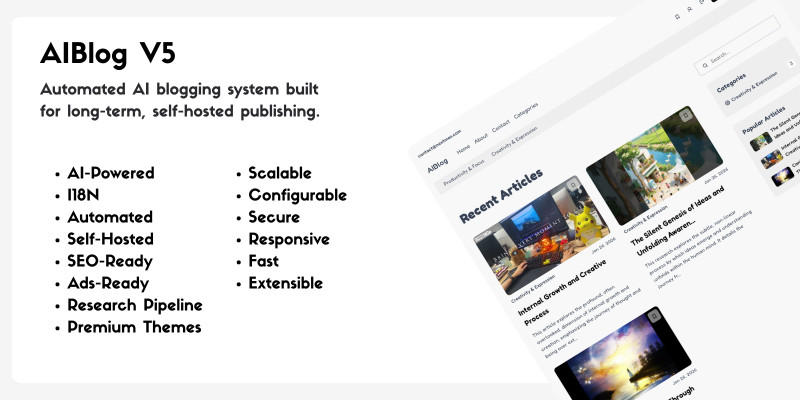 AIBlog - PHP Script. AI-powered blogging automation script that auto-publishes daily content, sends newsletters, add images and much more!