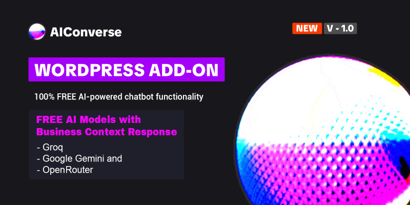 AIConverse - AI-Powered Chatbot WordPress Plugin. AIConverse: AI chatbot for WordPress. Intelligent live chat using Groq, Gemini & OpenRouter for tailored, context-aware respon