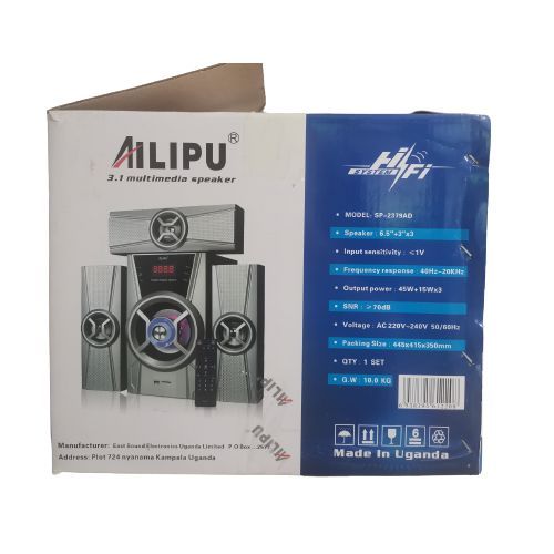 AILIPU 2379 – 3.1 Woofer Home Theatre System – Silver. Unique design keeps your subwoofer stable and steady even at radical volume levels, for more efficient use of power. Fine-tune your music to meet your requirements. You can use the Bluetooth app or the analog controls on your speaker’s top panel to perfect your sound according to the room you’re in. Key Features: AILIPU 2379 – 3.1 Woofer Home Theatre System – Silver. High-Powered PA Loudspeaker Style Brand: Ailipu Output power: 45W+15W×3. 3.1 multimedia speaker system Multi-purpose: Bluetooth speaker, FM stereo, Mp3 player, SD card, DVD video, and others. Speaker:65″+3″ ×3. Input sensitivity: Bluetooth-USB Crystal Clear Sound