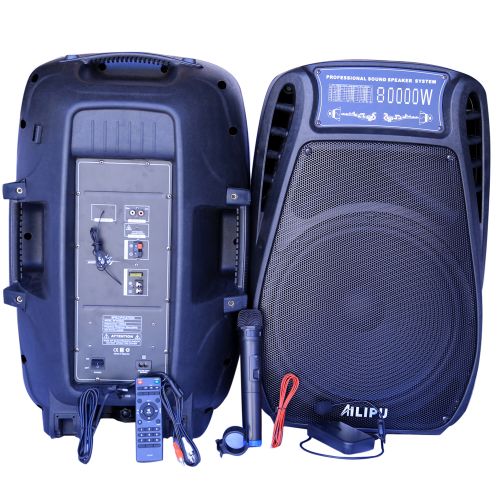 Key Features: Wireless microphone,headset microphone FM radio tuner Not rechargeable Travel-like-system with rollers Flash disk port Watts: 100W*2 AC 110-240V 50/60Hz