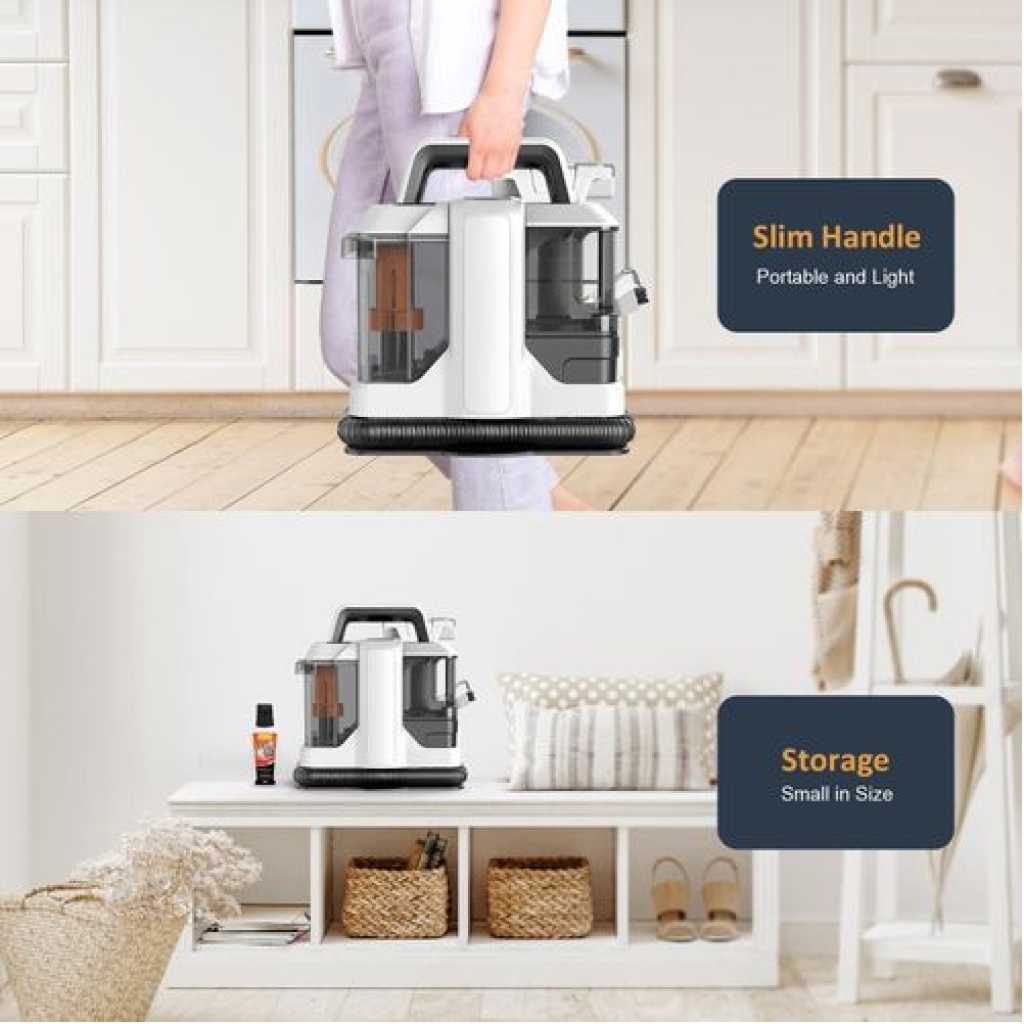 Ailltopd Portable Spot Carpet Cleaner Machine, Powerful Deep Stain Cleaning for Couch, Pets, Car Seats, Upholstery & Furniture, Spot with Dual Size Brushhead. ????SUPER SUCTION: The Ailltopd carpet cleaner machine is equipped with a 450W motor, which can provide a super suction force of 11Kpa. which can quickly and deeply handle various stains and stubborn paint, such as beverages, juice, pet urine, dust on sofa covers, etc. It is also equipped with a strong suction system, ensure that the carpet can dry quickly after cleaning, allowing it to quickly return to its normal state, making your home environment healthier and safer.. ????DUAL WATER TANK SYSTEM: 0.8L sewage tank and 1.8L clean water tank are stored separately, allowing you to easily disassemble the water tank for filling, draining, and cleaning. Tips: The water volume of the sewage tank can’t exceed the MAX line, otherwise it may cause the suction of the carpet cleaner to stop. The clean water tank can be added our equipped agent and sprayed evenly on the carpet or pad to ensure better cleaning results. (Please refer to the instructions on the agent for ratio.) ????PORTABLE CLEANING: The upholstery cleaner machine with an ultra long hose (3.57ft) and power cord (16.4ft) and the carpet cleaner is lightweight and easy to move from one cleaning job to the next. And the wires and hoses can be easily stored on the bracket of the cleaning machine.The brush can be stored on the machine’s dual brush hook. Don’t take up space in the home. ????WIDE APPLICATION RANGE: The carpet cleaner machine is for fabric cleaning, and cleans most fabric products that cannot be cleaned as a whole, such as sofa, mattresses,car seat,and other difficult to clean items,and is equipped with two sizes of brush heads, which can be used for different areas of stains and can perfectly handle leaks and accidents for you, providing a comprehensive cleaning experience and making it a new look. ????SPACE EFFICIENT: The carpet cleaner machine weighs only 9.3 pounds and covers an area of only 0.076 m2. Its compact size can be stored under a sink or in a closet, without occupying too much home space.For more product details, please read the product manual carefully.we will be responsible for any product quality problems during the warranty period (1 year),please contact us actively.