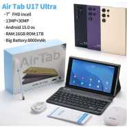 Experience next-level tablet computing with the Air Tab A07, a powerful device that combines performance with versatility. The 7-inch FHD incell display delivers crisp, vibrant visuals for all your content. With an impressive 16GB RAM and massive 32GB storage capacity, multitasking and storage concerns become a thing of the past. The tablet runs on Android 15.0, ensuring access to the latest features and applications. Capture life’s moments with the dual-camera setup, featuring a 13MP main camera and a 30MP front camera for superior photo quality. The robust 10000mAh battery provides extended usage time, perfect for long work sessions or entertainment on the go. The package includes a stylish keyboard case for enhanced productivity, a precise stylus for detailed input, and a wireless mouse for complete control. Available in elegant black, grey, and gold colour options, the A18 adapts to both professional and personal environments. The tablet comes complete with all necessary accessories and documentation for immediate use. Key Features: DISPLAY TECHNOLOGY: 7-inch FHD Incell display delivers crystal-clear visuals with vibrant colours and sharp details for an immersive viewing experience POWERFUL PERFORMANCE: Impressive 16GB RAM paired with massive 1TB storage capacity ensures smooth multitasking and ample space for all your files BATTERY CAPACITY: Robust 8000mAh battery provides extended usage time, perfect for long work sessions or entertainment on the go CAMERA SYSTEM: Versatile dual-camera configuration featuring 13MP rear camera and 30MP front camera for high-quality photos and video calls COMPLETE PACKAGE: Includes keyboard case for productivity, precise stylus for detailed input, and wireless mouse for enhanced control