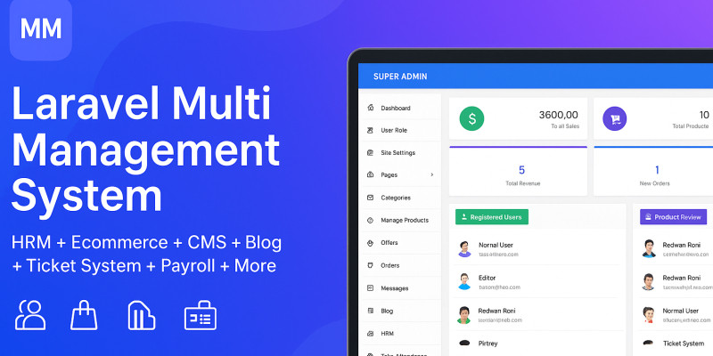 All-in-One Business ERP. A complete Laravel 10 platform combining Business ERP, E-Commerce, HRM, Payroll, CRM, Ticketing, and CMS in one solution.