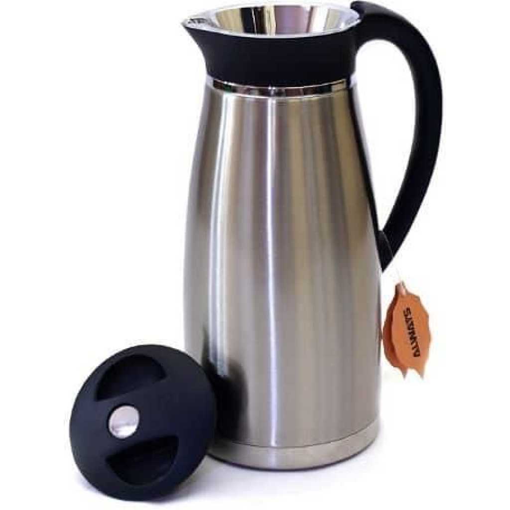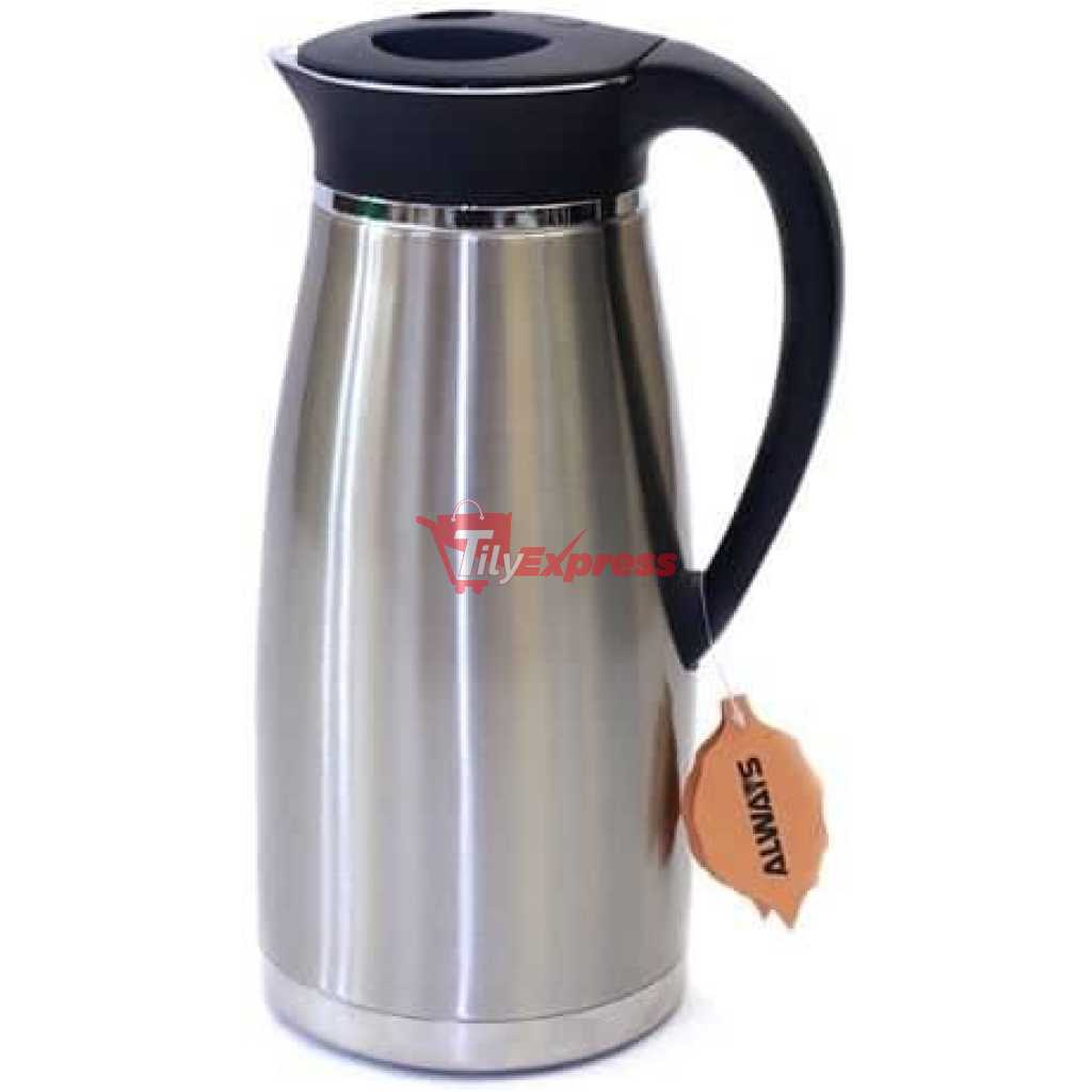 Always 2.5L Hot & Cold Stainless Steel Vacuum Insulated Tea And Coffee Flask- Silver Are You Tired Of Old & Boring Heavy Thermos Bottle flask? Do You Hate Drinking Water from Low-Quality Plastic Bottles? Then You Would Love Our Stainless Steel Vaccum insulated Travel Flask Here Is Why – Elegant & Unique Design. – Premium Matte Exterior Finishing. – Advanced Temperature Control – Leak Proof & Spill Proof. – Sweat Free & Non-Slip Grip. – Easy to Clean. – Easy to Carry. – Idle for Hot and Cold Water. – Retains Original Beverage Flavor. – Perfect Travel Partner! Double wall vacuum insulated- Double vacuum wall construction allows for hot teas, soups, coffee, or other blends to remain consistently hot for up to 72 hours. Also cold water, smoothies, soft drinks, or anything you may need very cold, 72 hours of insulated confidence. It guaranteed a cool period. 304 Food Grade Stainless Steel: made from pure food grade, lightweight, durable 304 stainless steel. The purest form of material to house your liquid hot or cold. Will not sweat- the bottle will not sweat meaning it will not create condensation which may leave a ring of liquid on your expensive tables Advanced temperature retention- Cold insulation 72 hours, Hot insulation 62 Hours Perfect personal carrier – ideal for hot coffee, tea, and soup. Ideal for cold water, sports drinks, and smoothies. Hike with it, beach with it, or simply lug it wherever you go Key Features: Always 2.5L Hot & Cold Stainless Steel Vacuum Insulated Tea And Coffee Flask- Silver Color: Silver. Stainless steel Unbreakable High-quality investment 2.5 Litres Double Wall