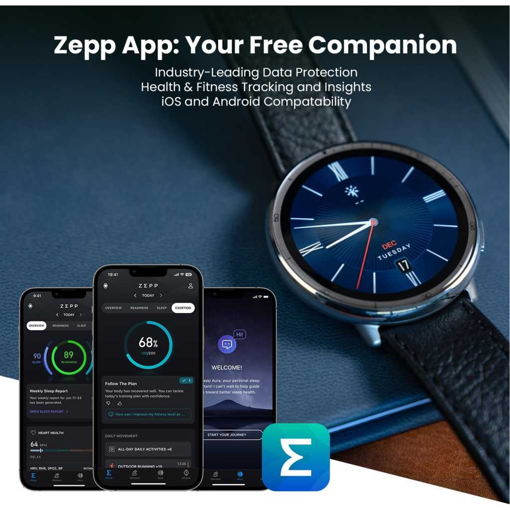 Key Features: Stylish Design, Bright Display: The sleek stainless steel build blends classic style with workout durability, while the bright 1.32″ AMOLED display keeps your data easy to read, even under bright sunlight. Precise Heart Rate & Sleep Tracking: Amazfit’s BioTracker technology tracks your heart rate and sleep data with accuracy that previous sensors just can’t match. Up to 10 Days of Battery Life: With long battery life that lasts up to 10 days with typical use, nightly recharges are a thing of the past. Free Maps with Turn Directions: Stay on-track with free downloadable maps, and get turn-by-turn guidance on-screen or via your Bluetooth headphones. Enjoy ski maps for global resorts, including guidance for cable cars, slopes, and more. Faster and More Accurate GPS Tracking: 5 satellite positioning systems ensure fast GPS connection and accurate positioning whenever you’re out running, walking, cycling or hiking. Over 160 Sports Modes: The Amazfit Active 2 smart watch offers 160+ workout modes, including HYROX Race, Strength Training, running, padel, and yoga. With 50m water-resistance and a barometer, go swimming and skiing with confidence. Free and Safe Zepp App: Featuring no hidden mandatory subscription fees, the Zepp App benefits from industry-leading data protection by AWS with GDPR compliance. Find all your health and fitness data, along with actionable insights, in one place. Speech-to-Text Message Replies: Zepp Flow offers full voice control of your smartwatch. Use it to send replies to Android messages using speech-to-text or keyboard input – it can even help with translations and tone suggestions. Choose Your Look: The Premium version features resilient sapphire glass, a luxurious leather strap, and a free additional silicone sport band. The Sport version features a breathable silicone strap in black or red, for comfort during workouts.