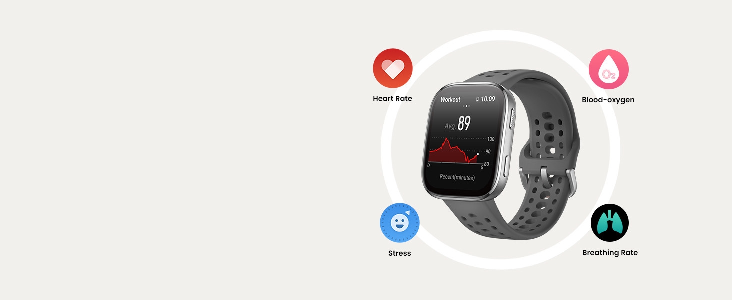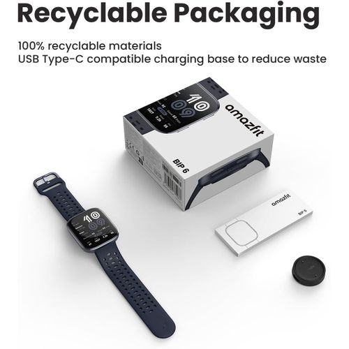 From the manufacturer Vibrant 1.97″ AMOLED Display Enjoy crystal-clear visibility with a bright and responsive display, ensuring effortless readability of your data, notifications, and maps – even under direct sunlight. Style that Endures The lightweight aluminum build blends effortless style with workout durability, while 5 ATM water resistance ensures resilience through every challenge. Upload your photo or pick from 400+ free watch faces on the Zepp App to customize your display with unique styles and data layouts. Previous page Next page Previous page 24/7 Health Monitoring Monitor your heart rate, stress, blood-oxygen, and breathing rate 24/7 with smart alerts for abnormal readings. Check all four metrics simultaneously in just 45 seconds for a quick overview Smart Watch Magnetic charging base (no USB Type-C cable) User Manual Accurate GPS Tracking & Navigation: Stay on course with free downloadable maps and turn-by-turn directions. Support from 5 satellite systems ensures precise tracking of every move and fast GPS connection. 24/7 Health Monitoring: The Amazfit Bip 6 smartwatch provides precise, real-time monitoring of heart rate, sleep, blood-oxygen and stress, empowering you with actionable insights to optimize your health and fitness.