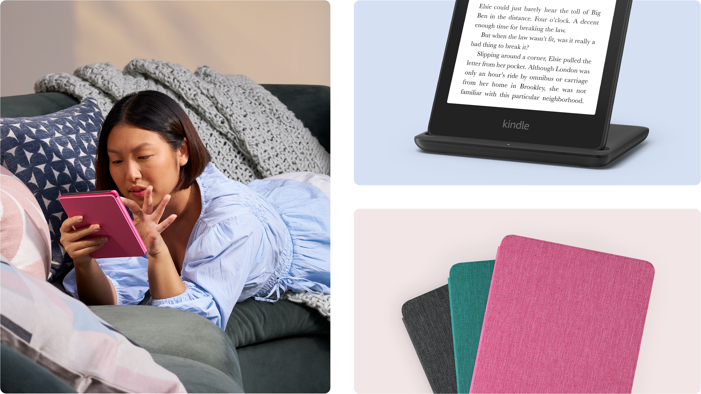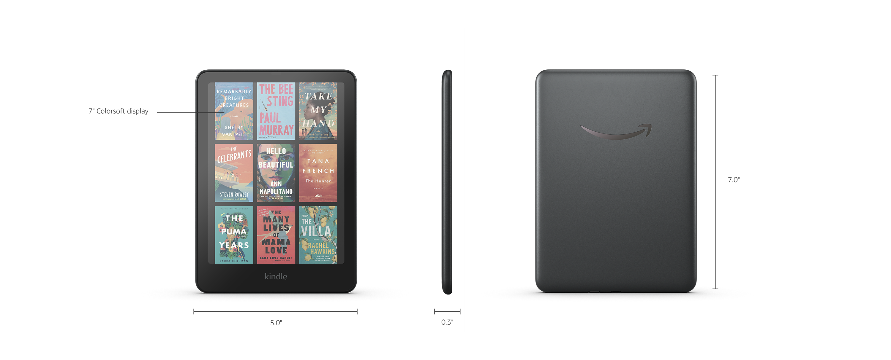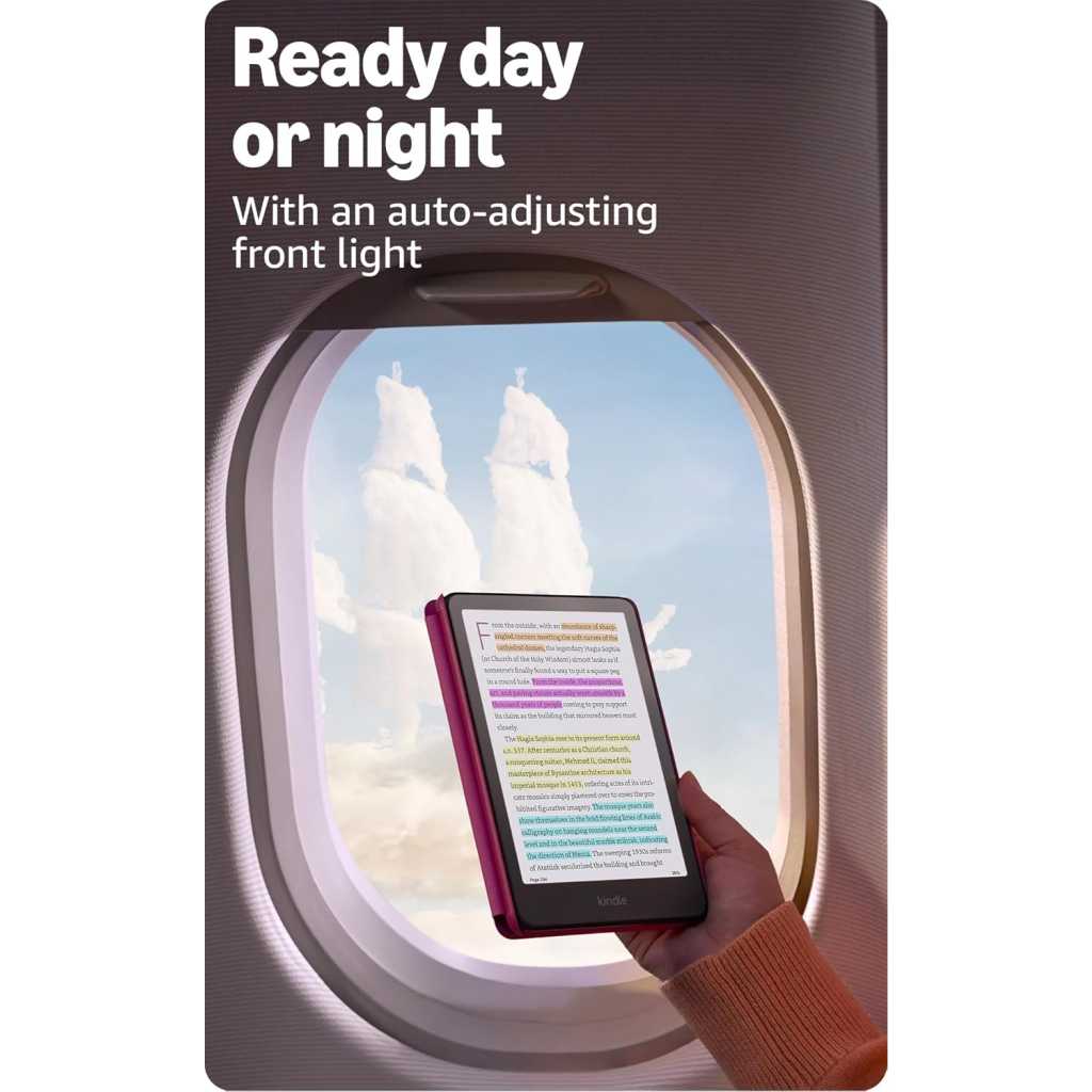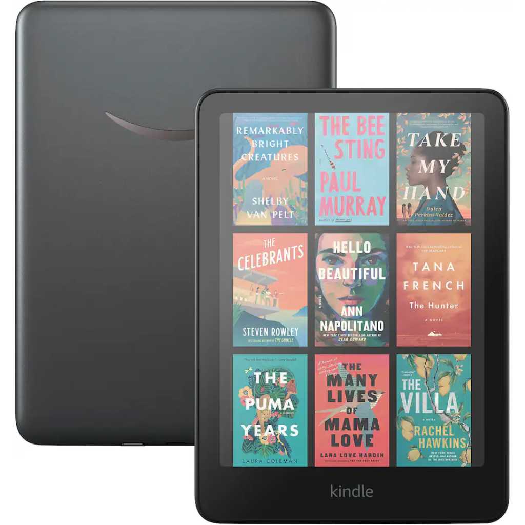 Top Brand: Amazon Brand insights 4.7 star rating for this brand from 100K+ customer ratings 100K+ orders for this brand in past 3 months Customers usually keep items from this brand Key Features: Read in color – The new 7″ Colorsoft display is high-contrast and easy on the eyes, with paper-like color that brings covers and content to life. Color your pages – Highlight your favorite scenes in yellow, orange, blue, and pink. Marathon reading – A single charge via USB-C lasts up to 8 weeks, or power up with the wireless charging dock (sold separately). Adapts to your surroundings – The glare-free display and auto-adjusting front light let you read in the brightest sunlight or late into the night. Waterproof and worry-free – Take your stories by the pool, in the bath, or anywhere in between. Massive selection – Instantly access over 15 million titles in the Kindle Store worldwide, and add a Kindle Unlimited subscription for all-you-can read access to a catalog including best sellers. A brand-new experience – The Kindle Colorsoft display is optimized for reading in color and is different from the Kindle Paperwhite display, which is optimized for black and white reading. Try the Page Color feature to invert the black text and white background of pages inside books. While different than Dark Mode, it enables comfortable reading while still displaying colorful images and covers.