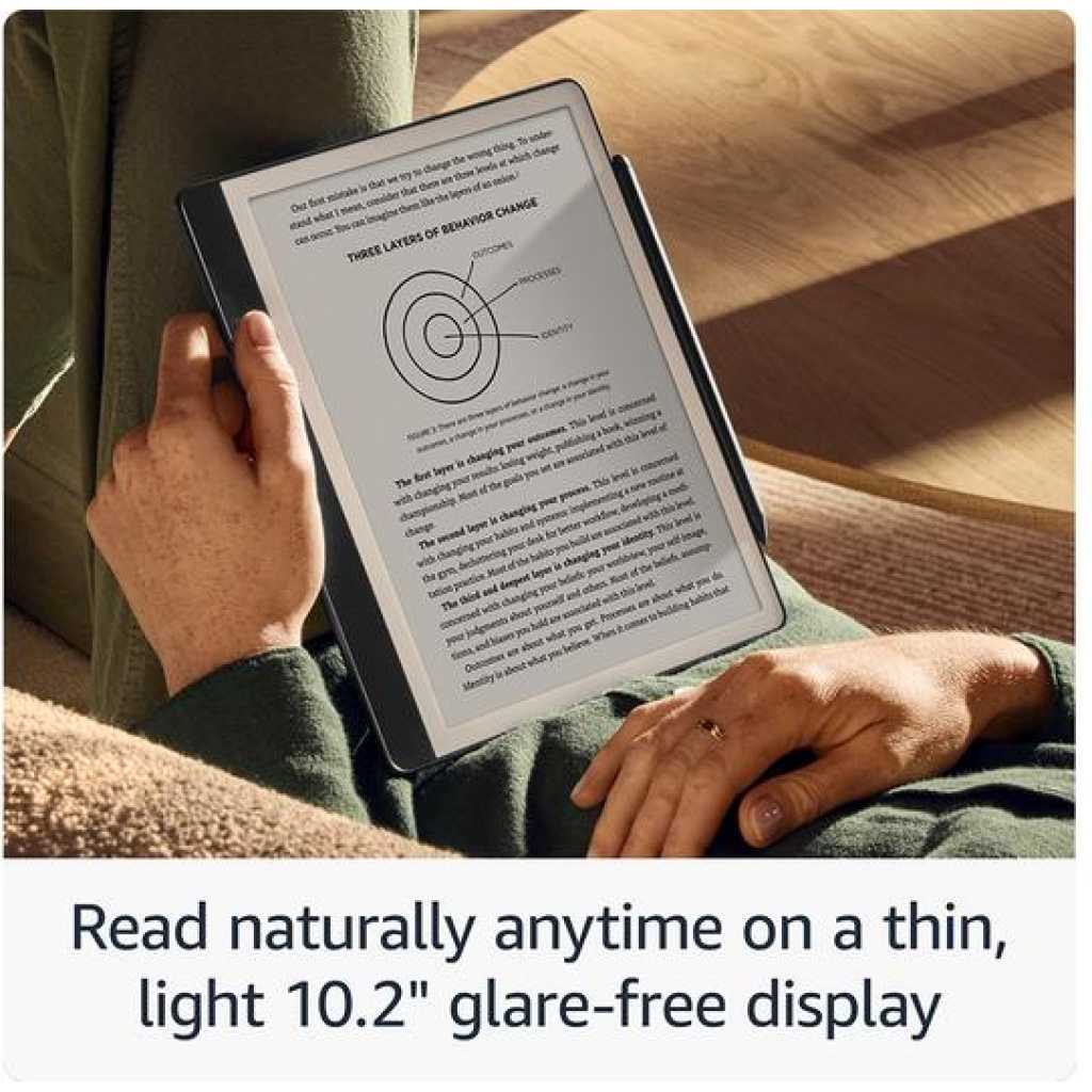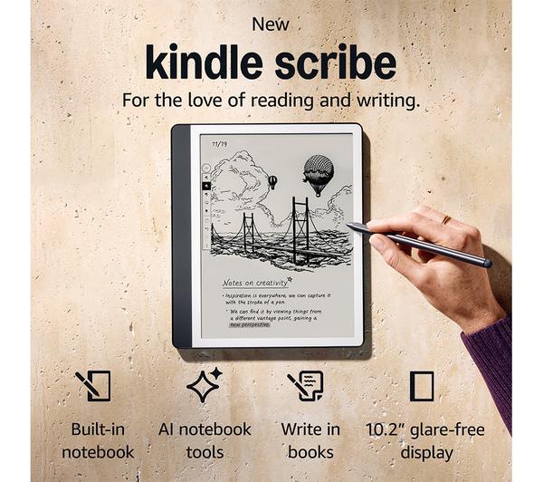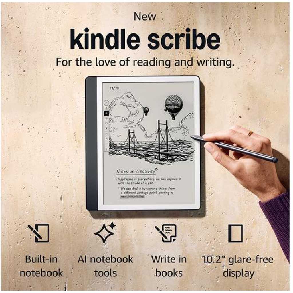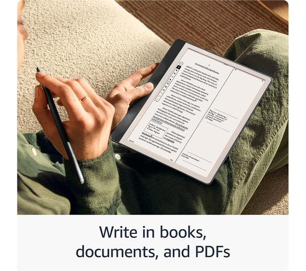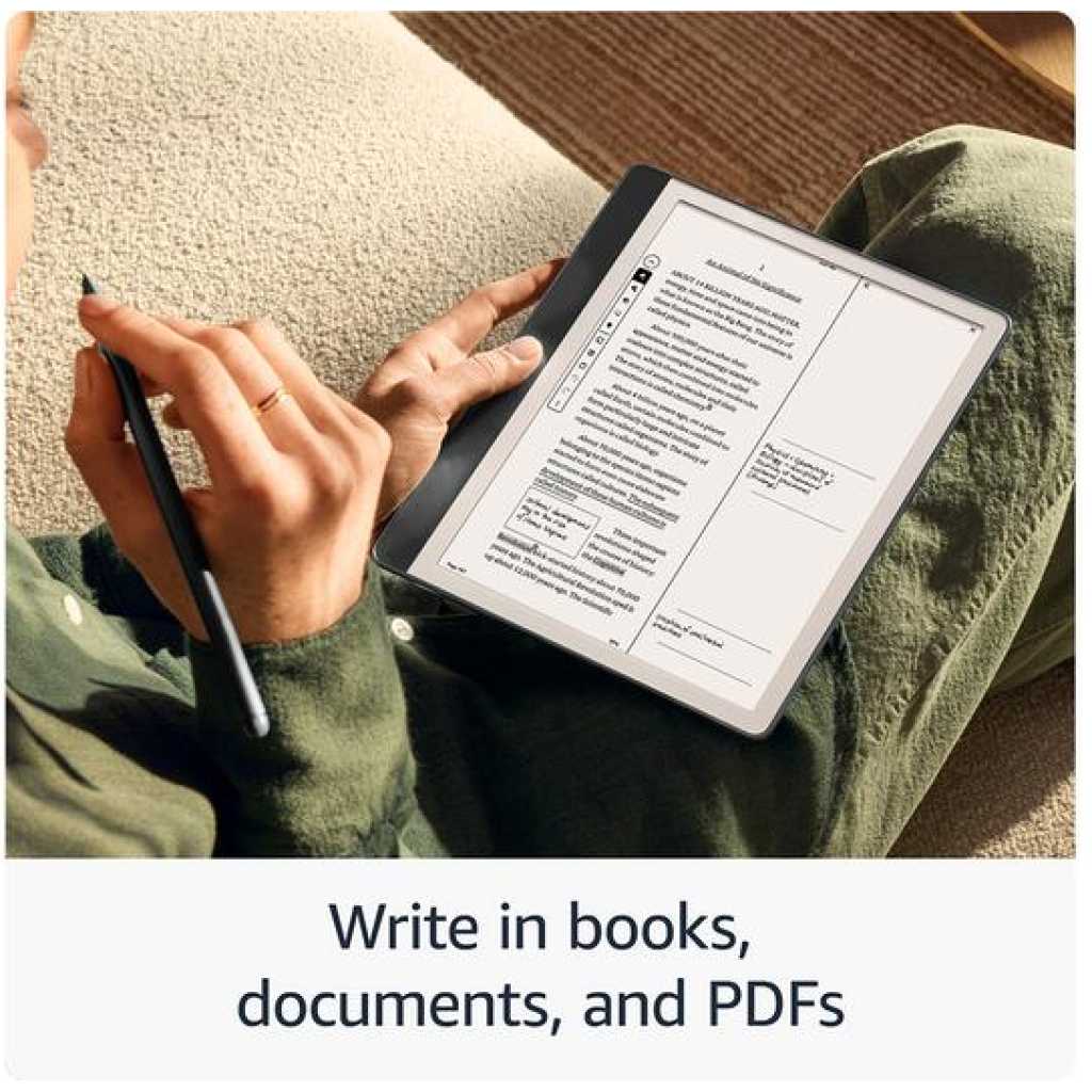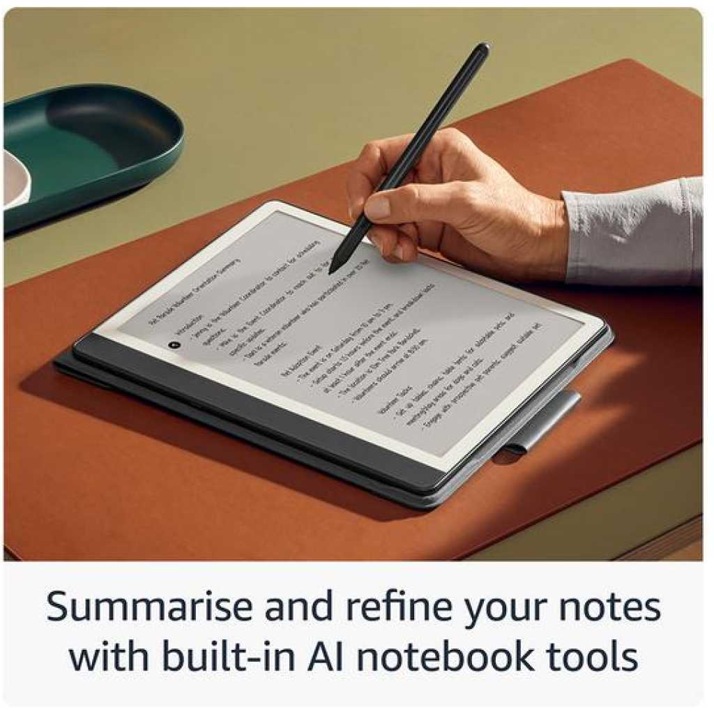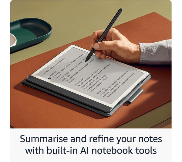 Key Features: A digital notebook for all your writing needs – Replace your stack of notebooks with a single device purpose-built for writing, reading, and thinking. No notifications or social media. With AI tools to transform your notes – Convert messy handwriting into readable font, summarize your notes, and change their length and tone with built-in AI notebook tools. Feels like pen on paper – See, feel and hear your thoughts meet the page with every stroke of the Premium Pen. No need to set up or charge, just start writing. Easily import and mark up documents – Import documents and PDFs using Send to Kindle, and mark them up directly on the page. Capture insights as you read – Just start writing on a book’s page and Active Canvas will create space for your notes. Expand the margins to add more notes, or collapse them to see the original page. Read comfortably in any light – The 10.2″ glare-free, 300 ppi front-lit display is designed for reading and writing anytime, indoors and out. Power that keeps up with your ideas – Read for months, write for weeks, all on a single charge.