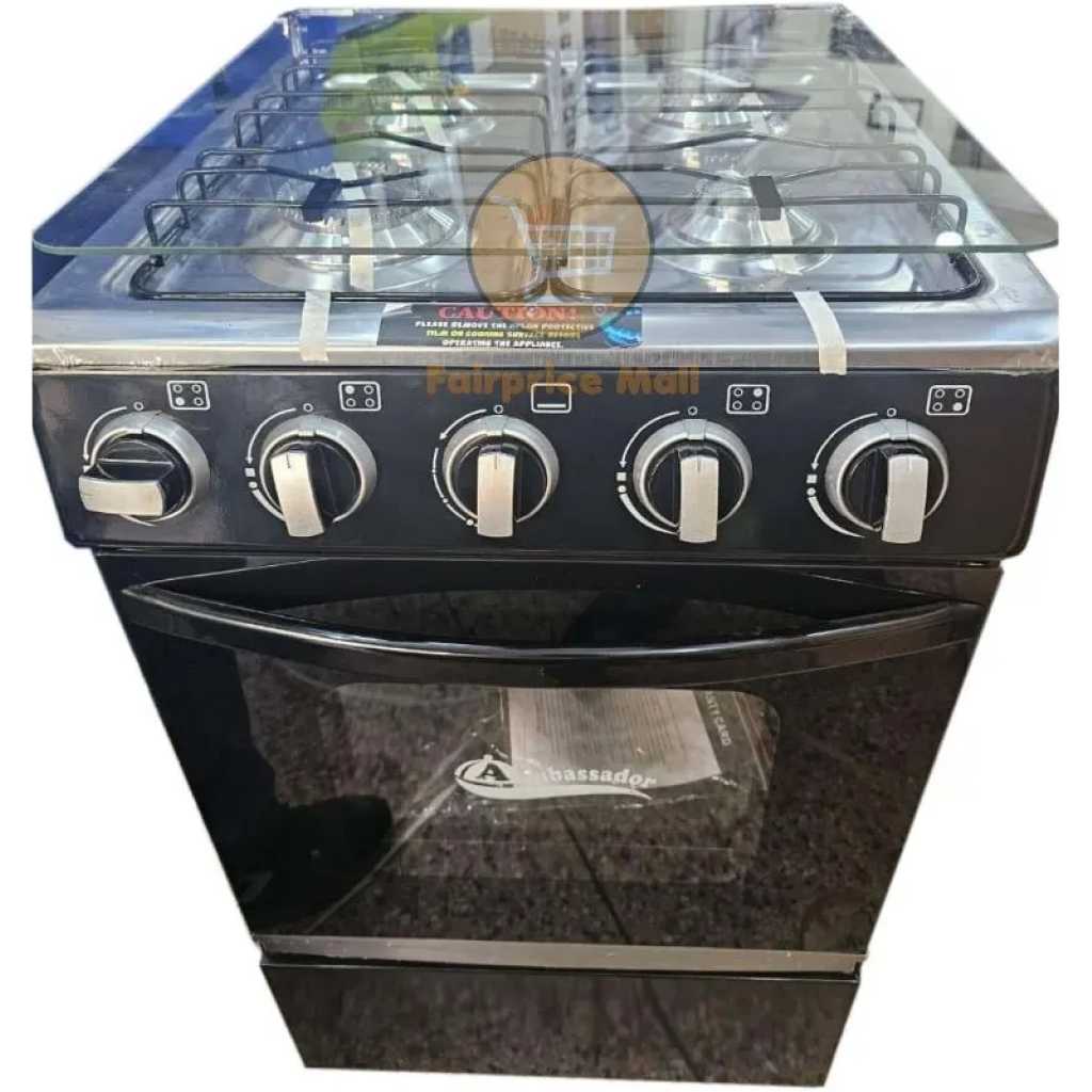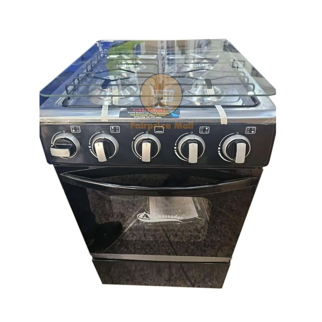 Brand: Ambassador Type: 4 Gas Burner cooker Gas Oven Glass Top Cover Dimensions: 50×50 cm Manual Ignition 1 Years Warranty Key Features: Brand: Ambassador Type: 4 Gas Burner cooker Gas Oven Glass Top Cover Dimensions: 50×50 cm Manual Ignition 1 Years Warranty