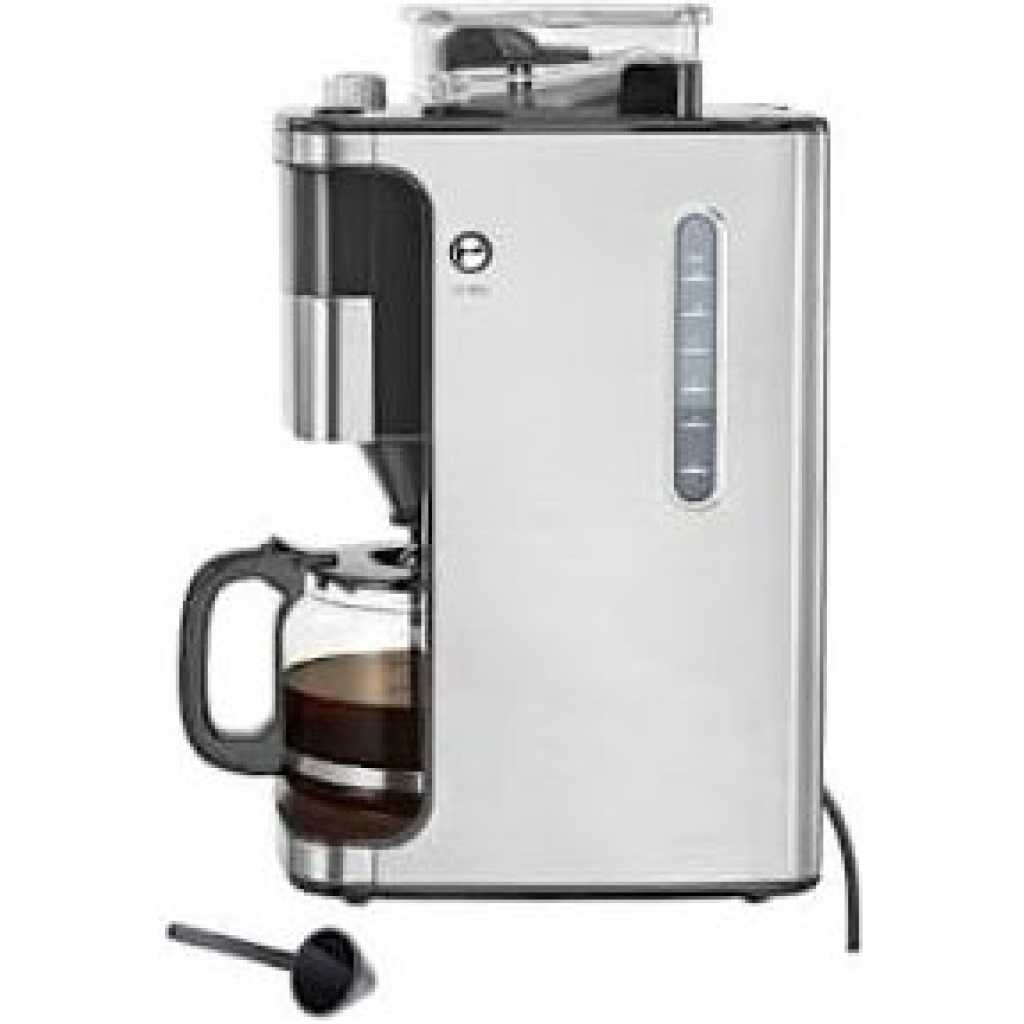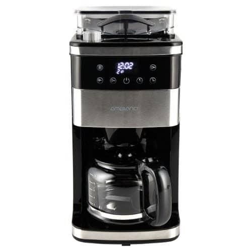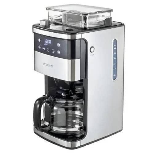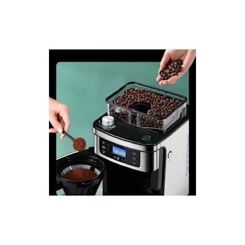 1.5L large capacity: The abrasive coffee machine can brew up to 12 cups of coffee. 2-in-1 Usage: Choose coffee beans or ground coffee to make drip coffee according to personal preference. Best flavor through brewing settings: There are 3 concentration control settings and 8 coffee grinding control levels to meet your taste needs. Timing function: Enter the timer mode, set the time you want to start automatically, the programmable timer will pre-set the start time of the machine, and start brewing coffee at the specified time. There is a prompt bell after brewing. This helps save time making coffee in the morning. Heat preservation function: After brewing, there is a thermal insulation board design, and the coffee can be kept warm in the glass for about 35 minutes. Pre-steeping function: This machine has a pre-brewing function to retain a stronger coffee aroma. Exquisite appearance: Control panel with blue lighting digital display, high-end and atmospheric appearance! This coffee machine conjures up your favourite hot drink from both options. Equipped with a grinder for the whole bean as well as a swivel filter, nothing stands in the way of your coffee enjoyment. You can use the numerous settings of the grinding, the amount of coffee and the aroma level if you prefer the whole bean, or regulate the strength of your filter coffee by the amount of water and fine coffee powder. Sure to be the very individual pleasure. Perfect grind technology with timer function to activate the brewing process, suitable for ground filter coffee as well as coffee beans, water tank capacity for 10 cup settings of the grinding, coffee quantity and 3 aroma levels, automatic shut-off, blooming function, swivel filter with removable filter insert 1 x 4 with drip seal and additional permanent filter 1.5Liter 1050Wattd 220-240V -50hz Model: MIT mahlwerk-1050w Outstanding coffee flavour thanks to the finest grinding and individually selectable grinding degree optimally matched to your own taste thanks to Perfect-Grind technology Full aroma development thanks to unique blooming function moisturises the coffee before pouring and intensifies the taste LED touch display with timer function for intuitive operation and activation of individual functions With grinder deactivation function for preparing pre-ground filter coffee Size (L x W x H cm): 26 x 23 x 42