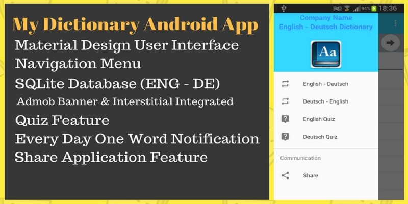 Android Dictionary App Source Code . Android Dictionary App With Admob Source Code with SQLite database English-Deutsch language.