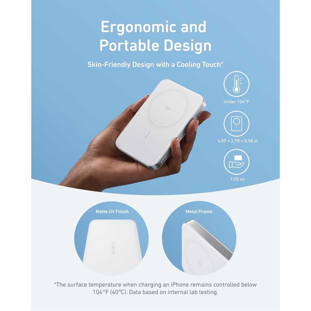 Key Features: Ultra-Slim and Portable: At just 0.58 × 2.78 × 4.09 inches, this 10,000mAh Anker power bank delivers exceptional portability without compromising on power capacity. It can offer up to 1.8 charges for an iPhone 15 Pro. Versatile Charging Options: Equipped with a 15W max Qi wireless charging pad and a 30W max USB-C port, you can effortlessly charge your devices at home or on the go. Premium Design and Durability: Featuring a sleek matte finish, a sturdy metal frame, and aerogel thermal insulation for cool operation, this power bank combines ergonomic and user-friendly experience with long-lasting durability. What You Get: Anker MagGo Power Bank (10K, Slim), 23.62″ / 60 cm USB-C to USB-C cable, welcome guide, 24-month warranty, and our friendly customer service. Compatibility Note: This power bank is optimized for the iPhone 12/13/14/15 series with 15W magnetic fast charging capabilities. While it can charge Android devices such as Samsung and Google phones, they will not support the magnetic feature or achieve the 15W wireless charging speed, and will charge at a lower efficiency.